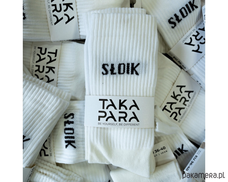 Nasze białe skarpetki Słoik są idealnym wyborem dla tych, którzy chcą dodać swojemu stylowi odrobiny warszawskiego humoru. Termin słoik, będący regionalizmem warszawskim, określa osobę przybyłą do stolicy z innych części Polski, często wracającą do rodzinnego domu z słoikami pełnymi jedzenia. To określenie, wzięte z codziennej obserwacji mieszkańców Warszawy, stało się sympatycznym, choć nieco figlarnym symbolem lokalnej kultury. Skarpetki te, wykonane z miękkiej i wytrzymałej bawełny w technologii 200 igieł, gwarantują nie tylko trwałość, ale również niezrównany komfort noszenia. Ich oryginalny design z pewnością przyciągnie uwagę i będzie świetnym tematem do rozmów. Czy to w pracy, czy podczas weekendowych wyjść, skarpetki Słoik dodadzą Twojemu strojowi wyjątkowego charakteru, jednocześnie podkreślając Twoje związki z Warszawą lub sympatię do jej unikalnych mieszkańców. Idealne jako prezent dla przyjaciela lub dla siebie, aby świętować różnorodność i kreatywność życia w stolicy Polski.