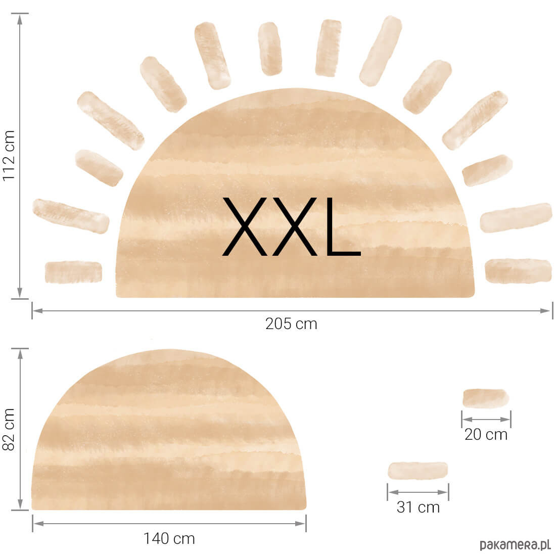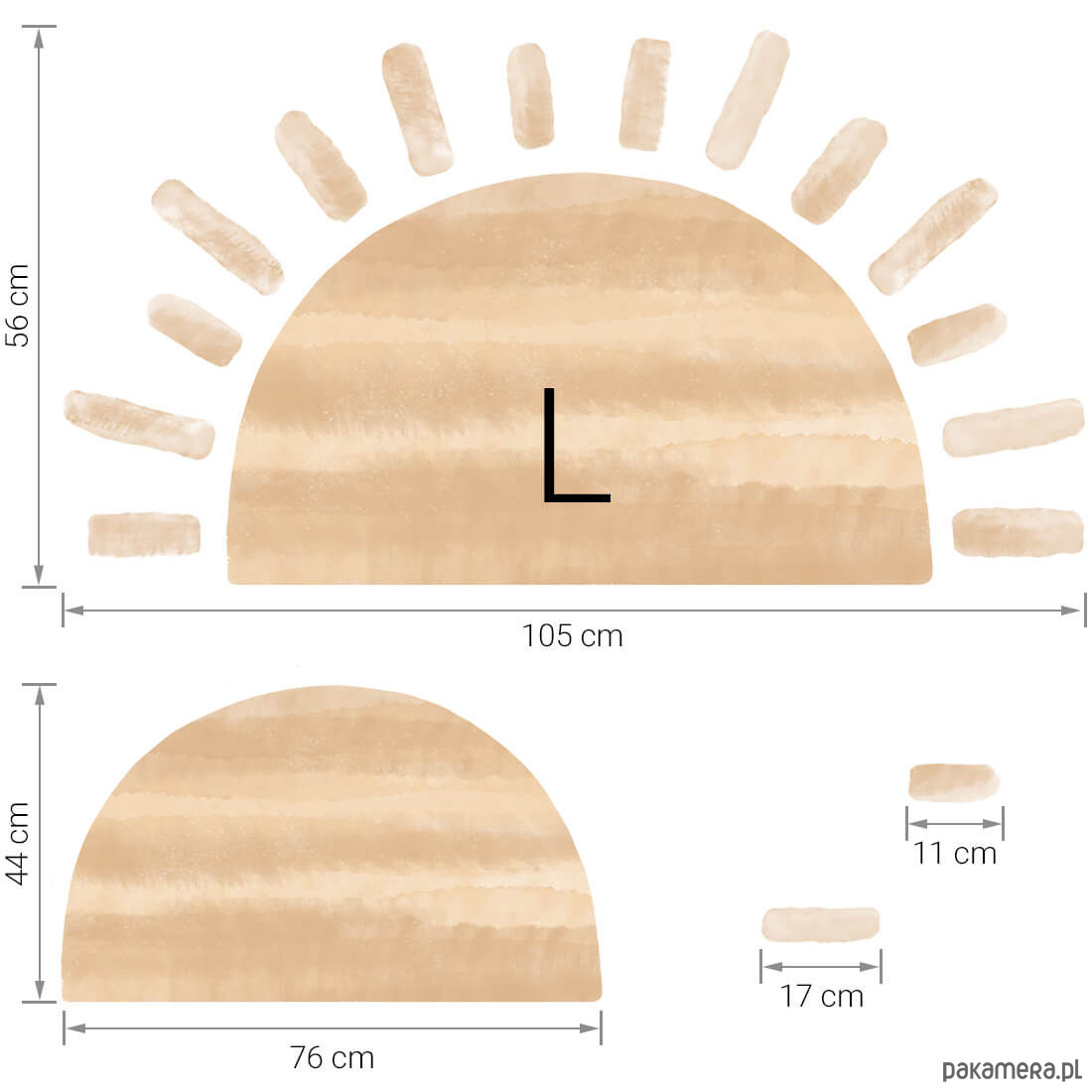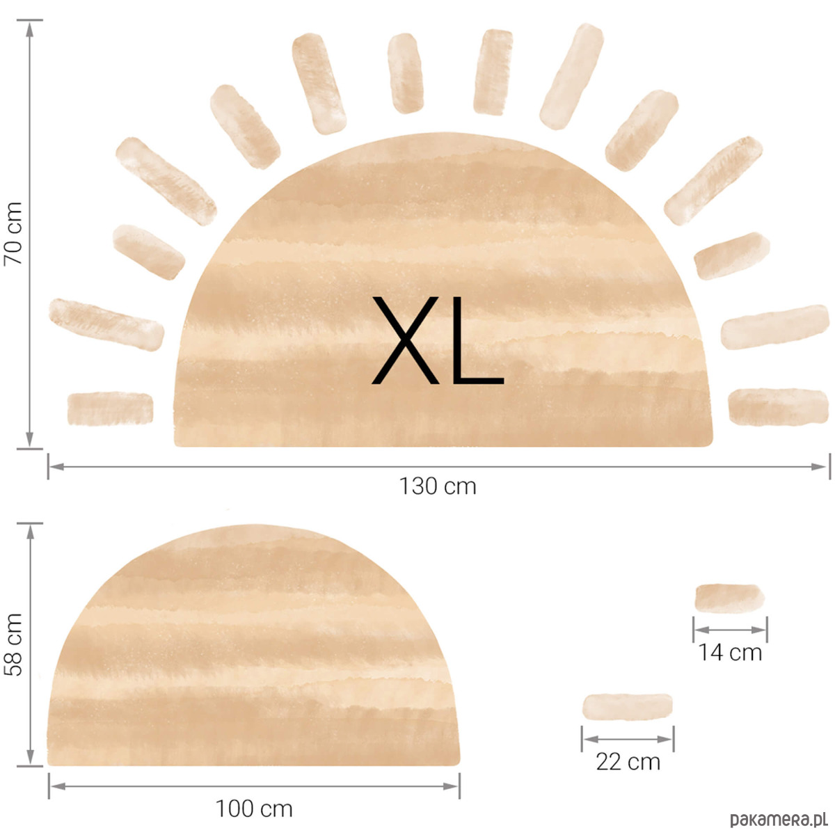 Naklejka słońce dostępna jest w trzech rozmiarach (sprawdź zdjęcia w galerii):