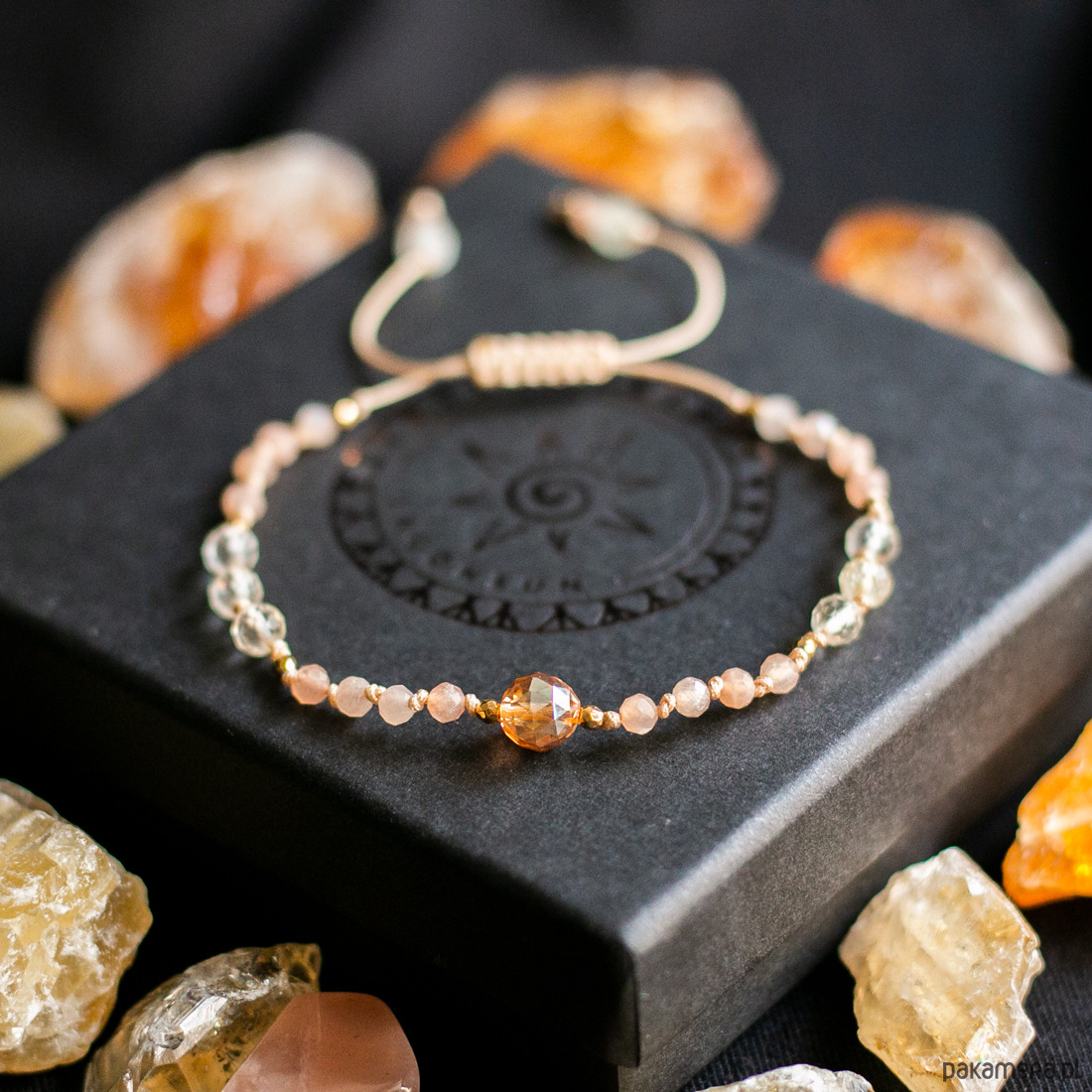 Słońce – Magiczna bransoletka zaplatana z intencją przyniesienia szczęścia, radości, optymizmu, rozświetlenia życia. Inspiracją do stworzenia tej bransoletki jest karta Tarota Słońce, która jest najszczęśliwszą kartą w całej talii. Poczuj się radosna, lekka, pełna nadziei i wiary. Przed Tobą najlepszy czas Twojego życia!