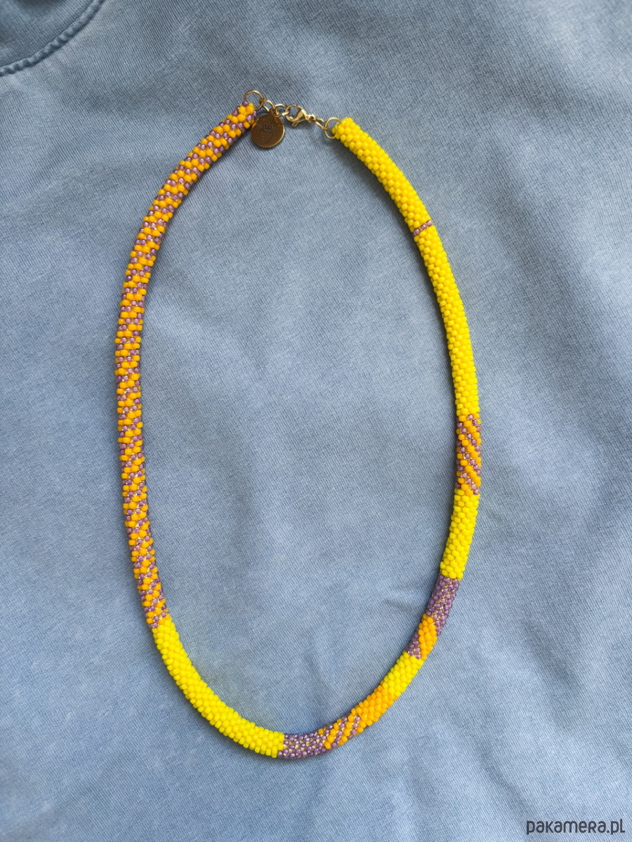Wykonany z około 1800 sztuk japońskich koralików Toho. Zapięcie ze stali szlachetniej. Długość około 45 cm