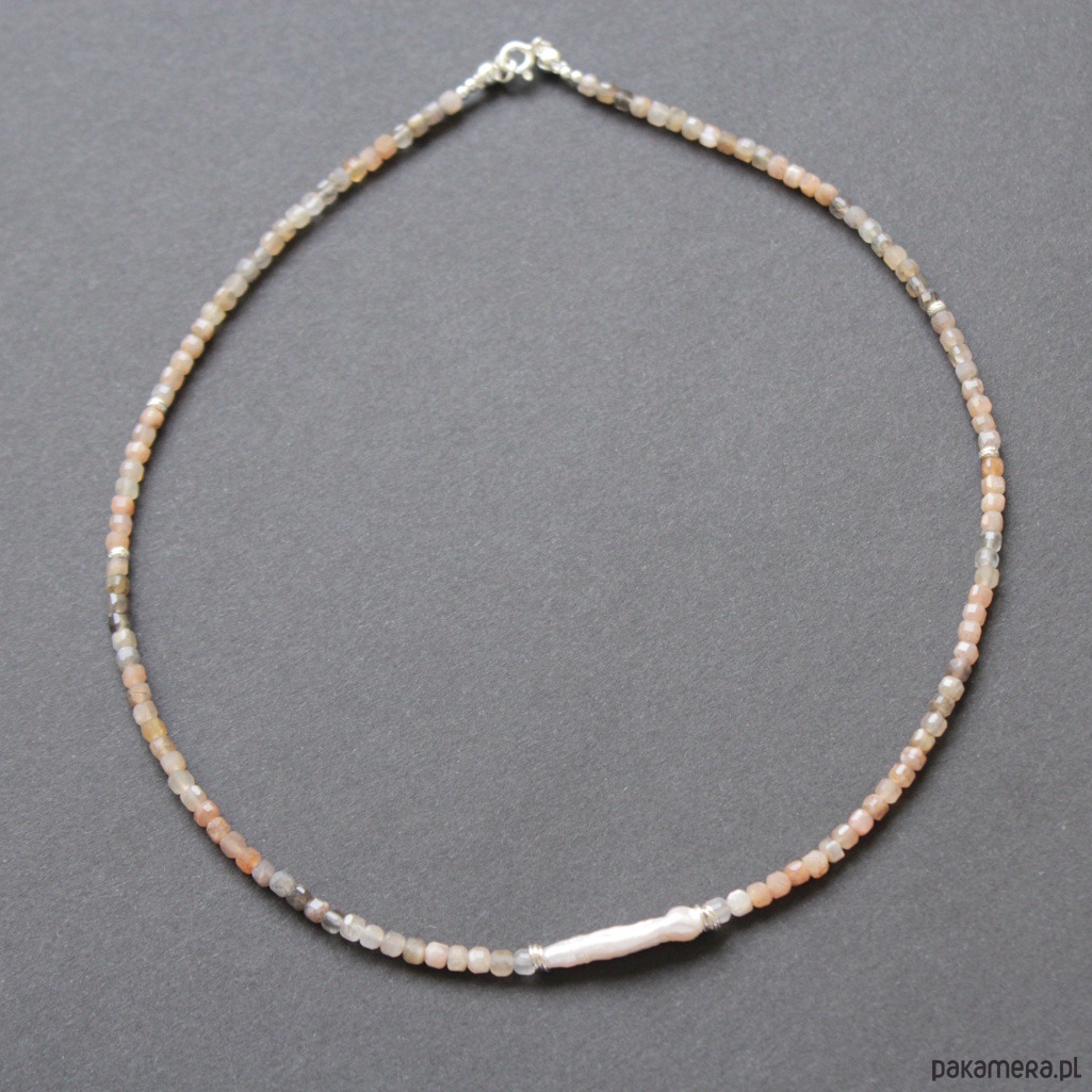 Naszyjnik wykonany został ze srebra próby 925 oraz przepięknych fasetowanych kamieni słonecznych wielkości 0,3 cm.
