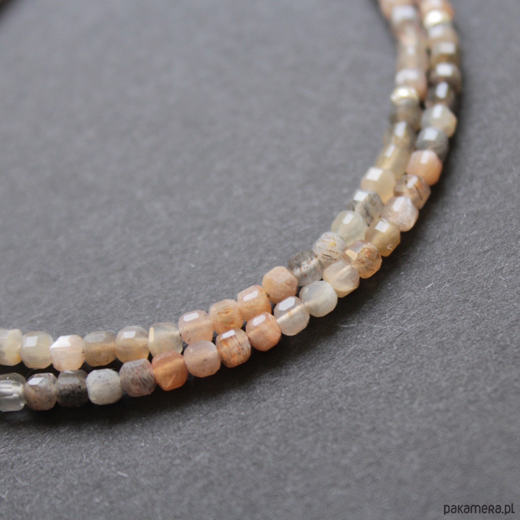 Naszyjnik wykonany został ze srebra próby 925 oraz przepięknych fasetowanych kamieni słonecznych wielkości 0,3 cm.
