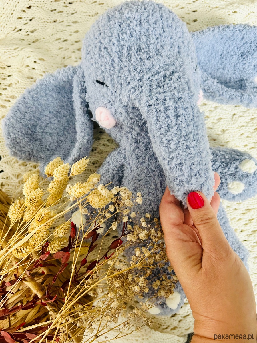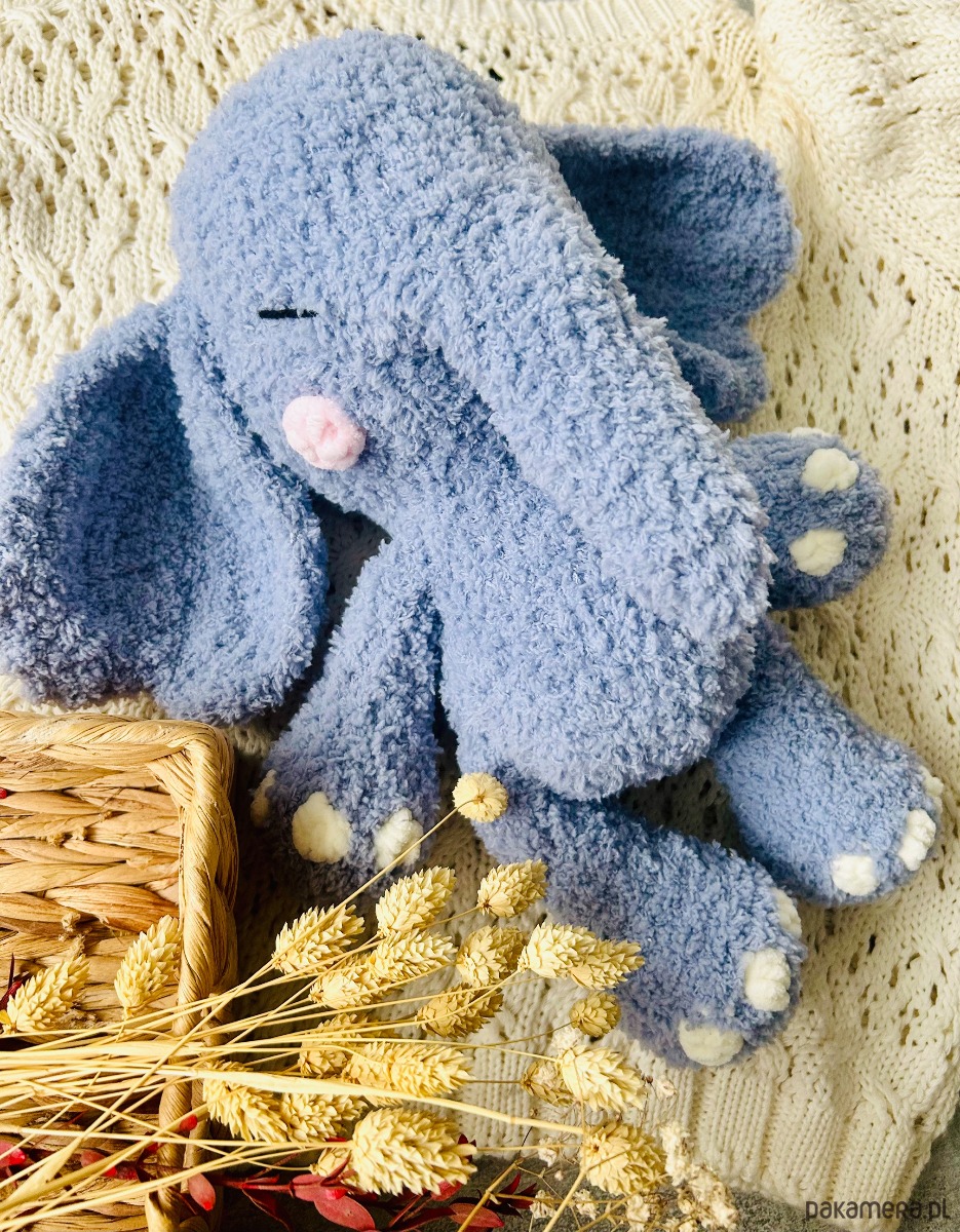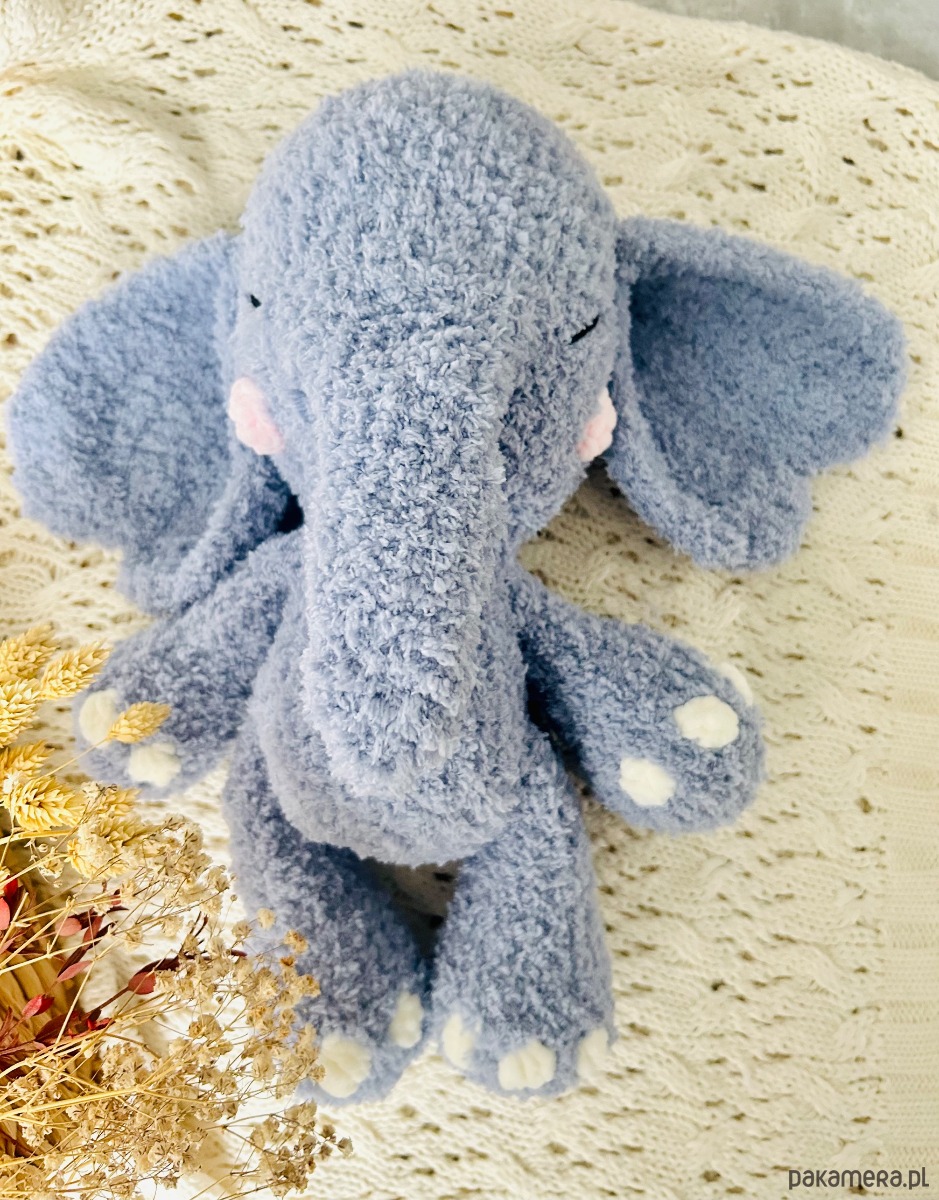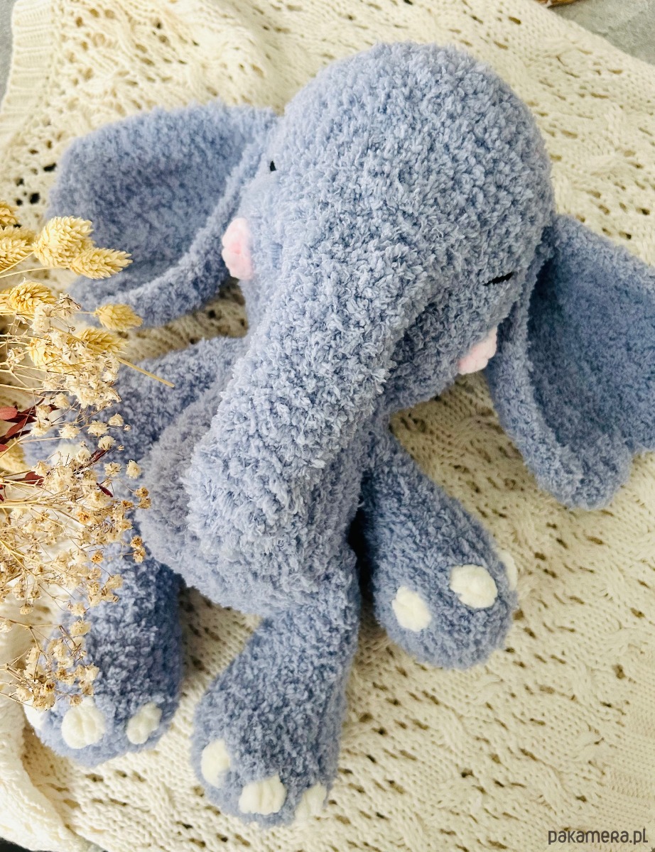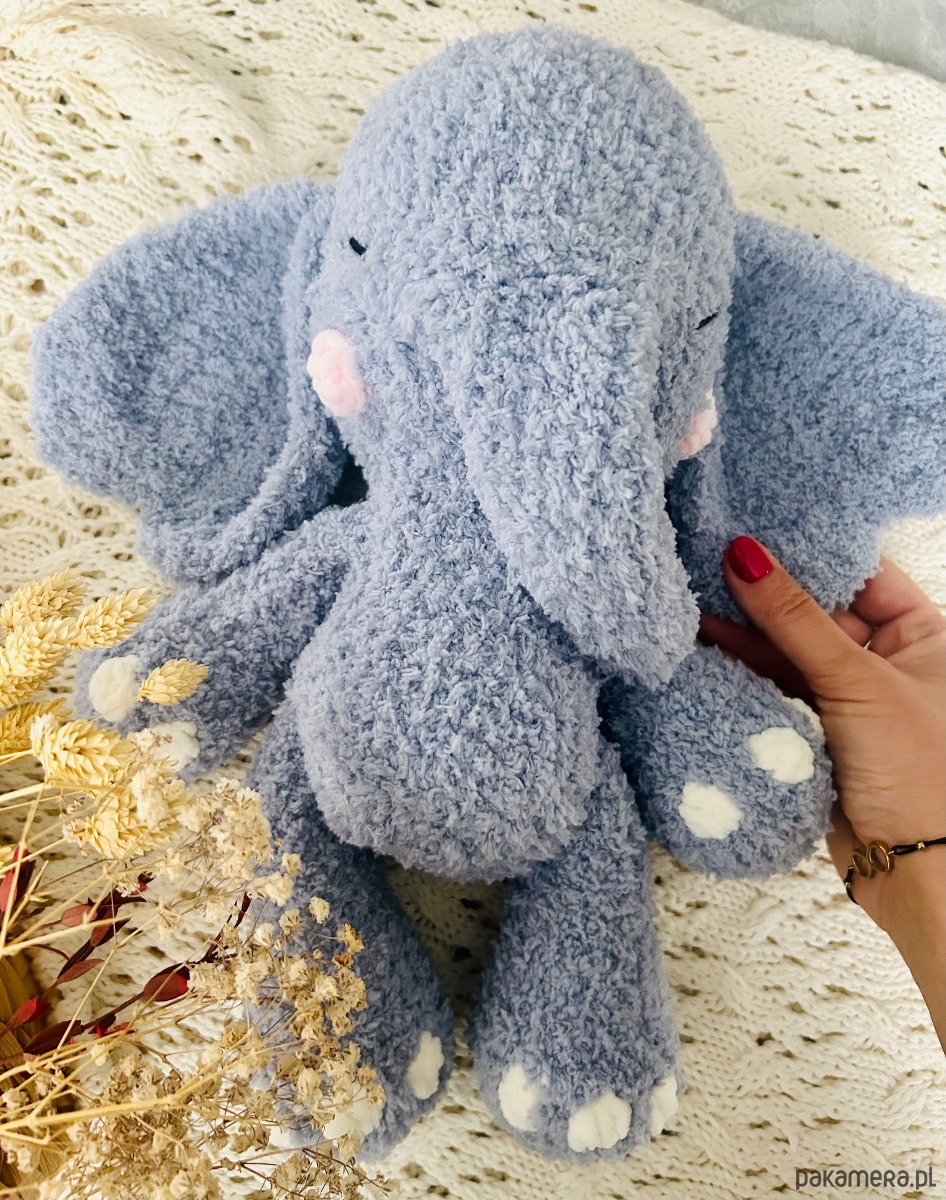 🐘✨Uroczy słonik o wysokości ok. 37 cm, wykonany z wyjątkowo miękkiej, włochatej włóczki w szaroniebieskim kolorze 🐘💙.