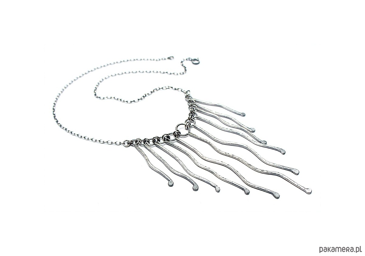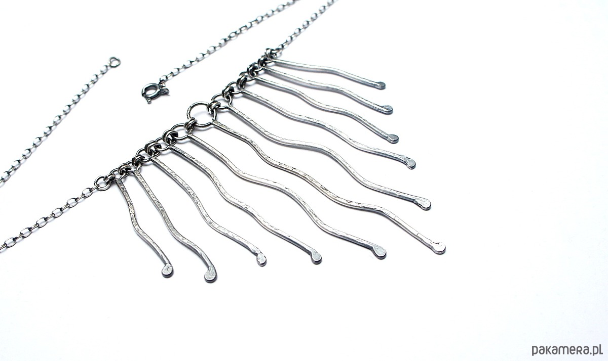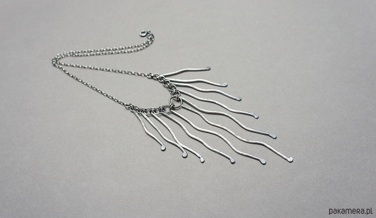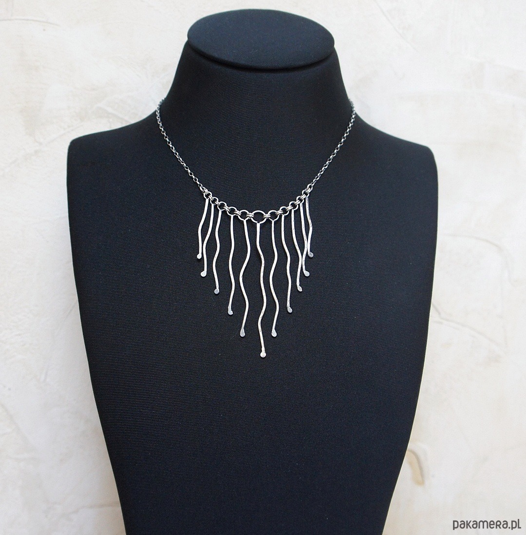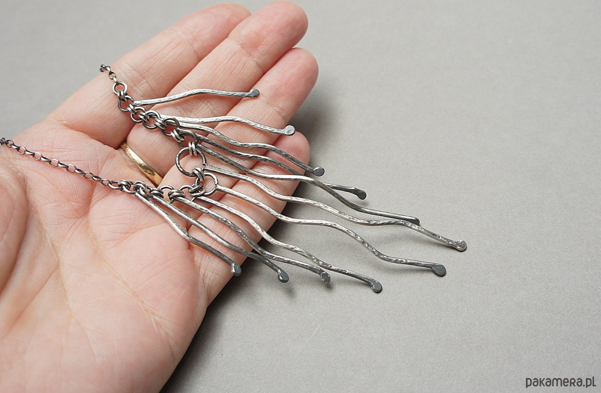 Naszyjnik wykonany własnoręcznie od podstaw z drutu [pr. 925 ,śr. 1,5mm] . Srebro kute oksydowane i przetarte. Całkowita długość łańcuszka około 42,5cm. Biżuteria ozdobnie zapakowana