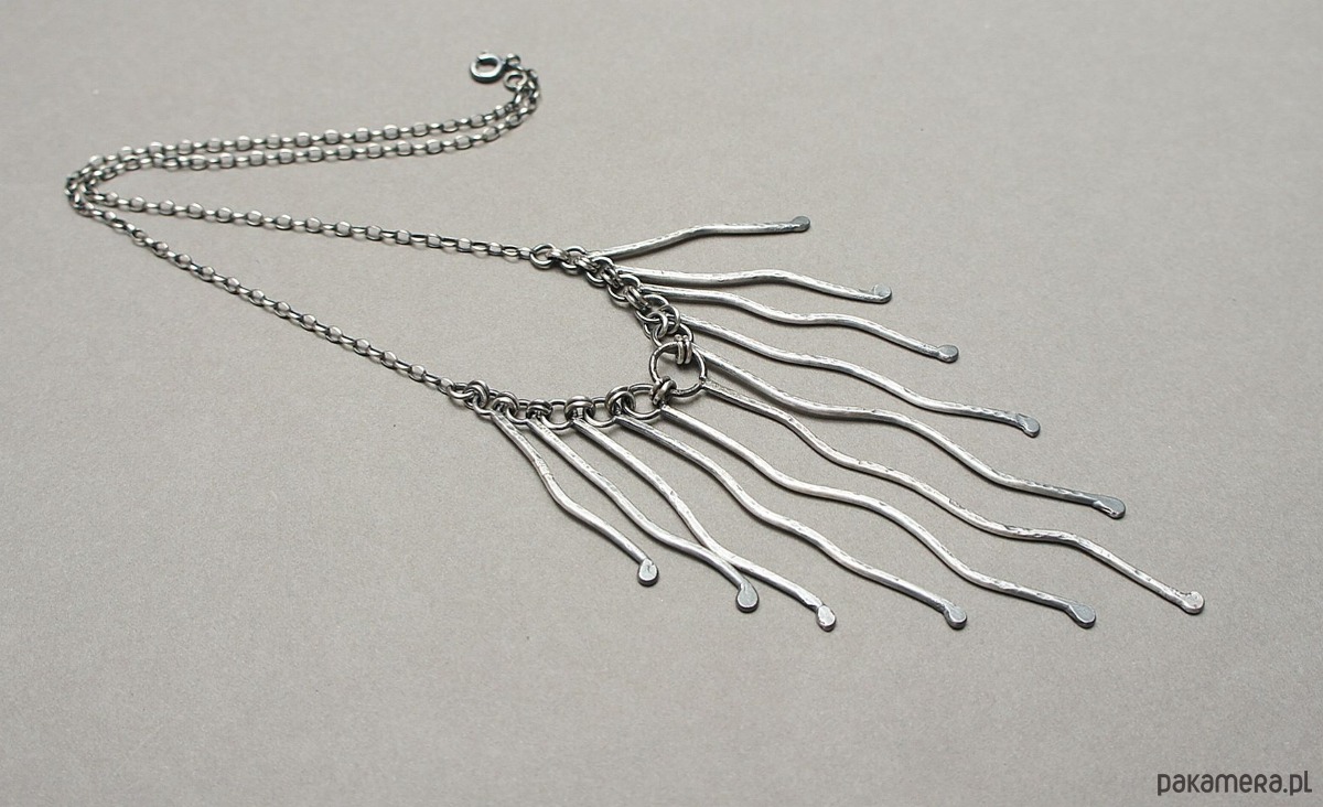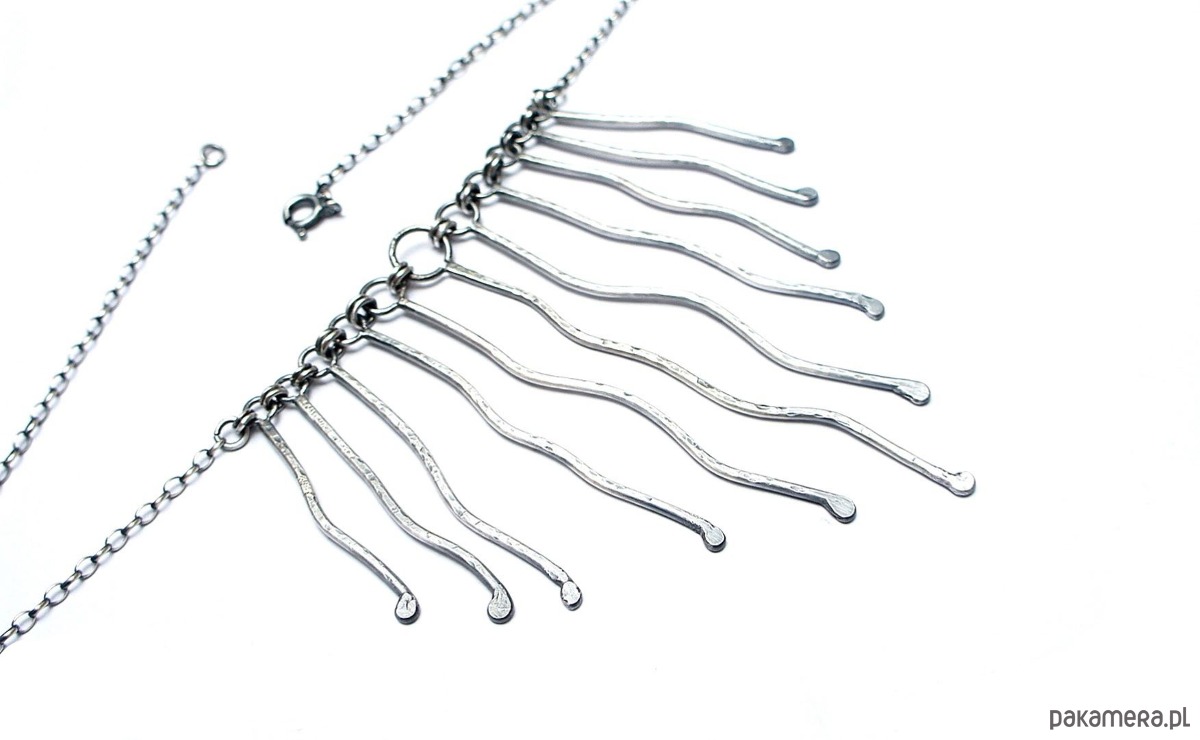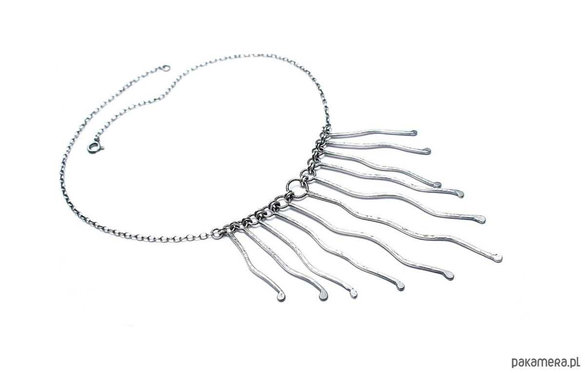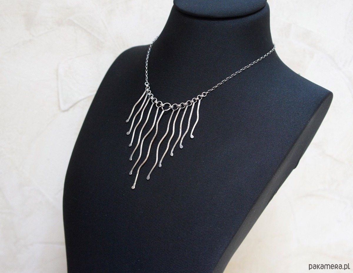 Naszyjnik wykonany własnoręcznie od podstaw z drutu [pr. 925 ,śr. 1,5mm] . Srebro kute oksydowane i przetarte. Całkowita długość łańcuszka około 42,5cm. Biżuteria ozdobnie zapakowana