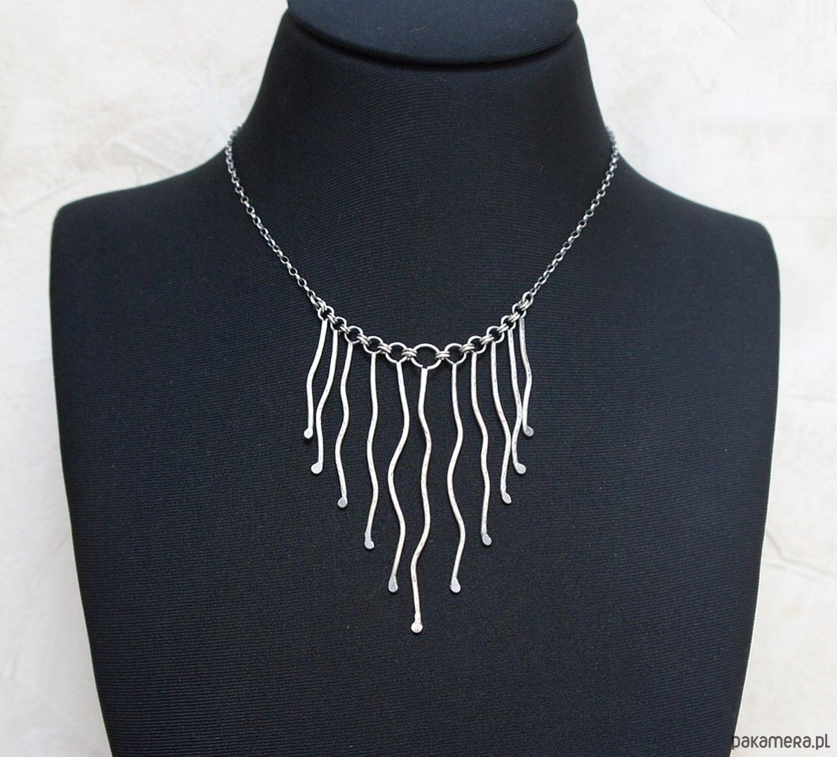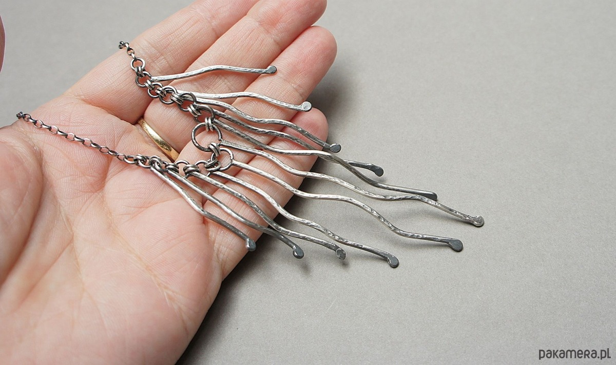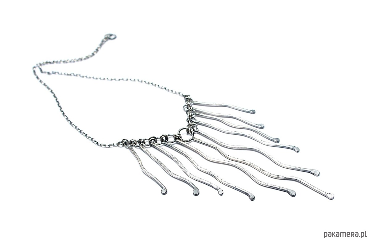Naszyjnik wykonany własnoręcznie od podstaw z drutu [pr. 925 ,śr. 1,5mm] . Srebro kute oksydowane i przetarte. Całkowita długość łańcuszka około 42,5cm. Biżuteria ozdobnie zapakowana