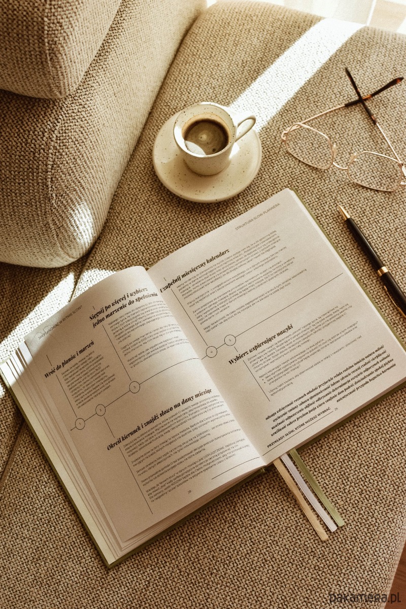- dokładne wytłumaczenie 9-etapowej struktury Slow Plannera - opis narzędzi i metod, które nauczą Cię świadomie planować, wyznaczać priorytety i dążyć do balansu