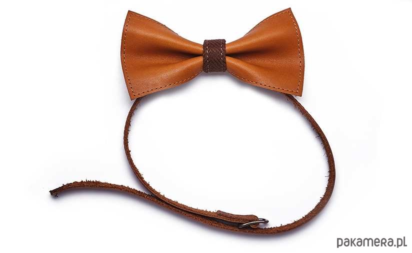 -skórzany pasek na zapięcie wokół szyi umożliwia szybką i łatwą regulację (muszka)