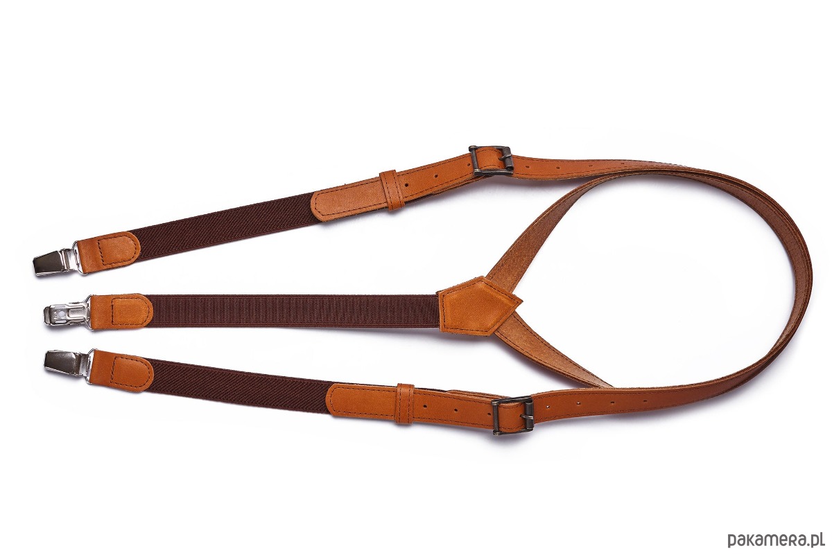 Brązowo - koniakowy zestaw ze skóry bydlęcej "Cognac brown" z brązową gumą, muchą oraz poszetką to doskonałe rozwiązanie dla mężczyzn ceniących sobie szyk, elegancję, klasykę a jednocześnie nietuzinkowy i unikalny wygląd. Zestaw składa się z szelek, muchy oraz poszetki.
