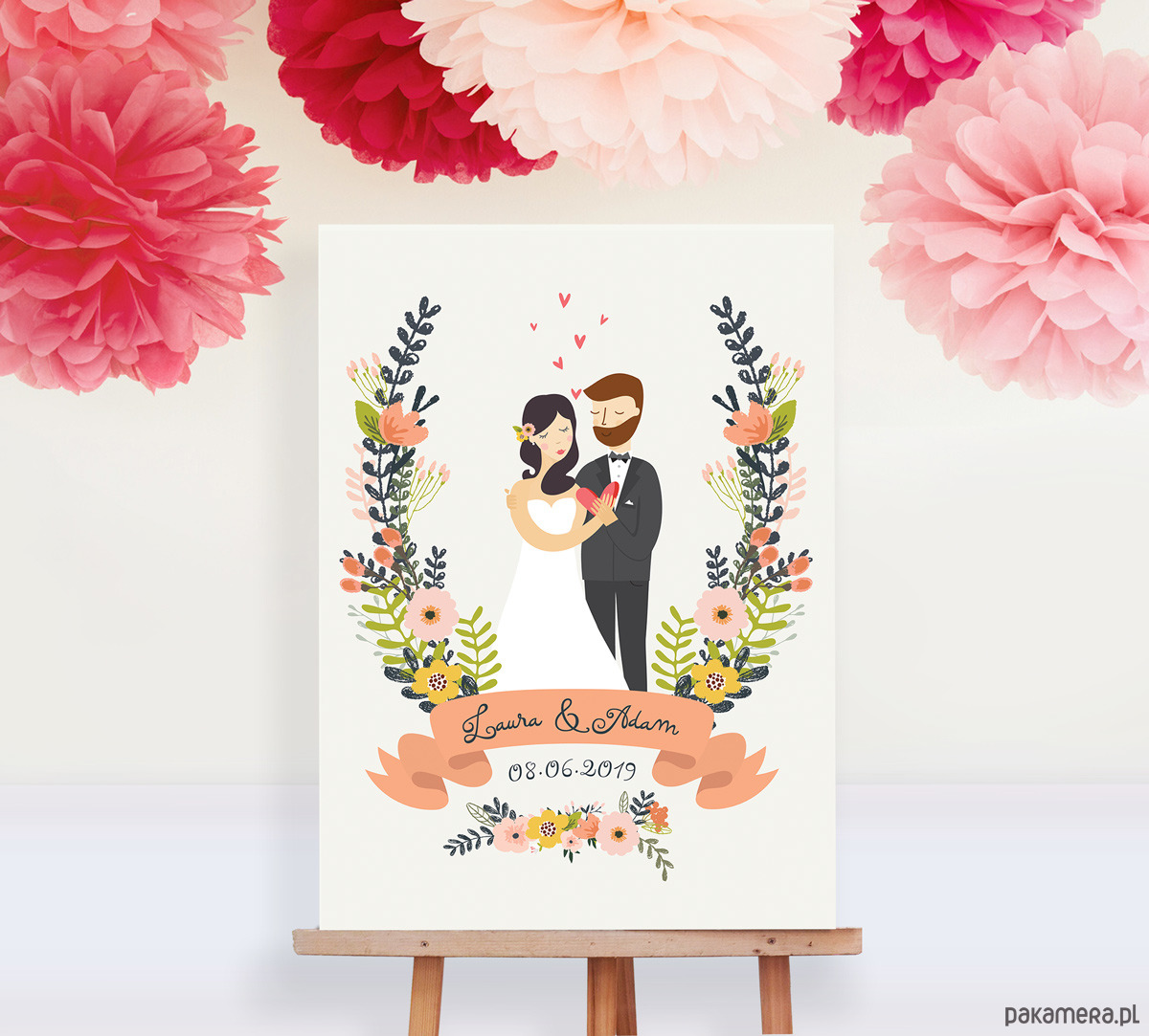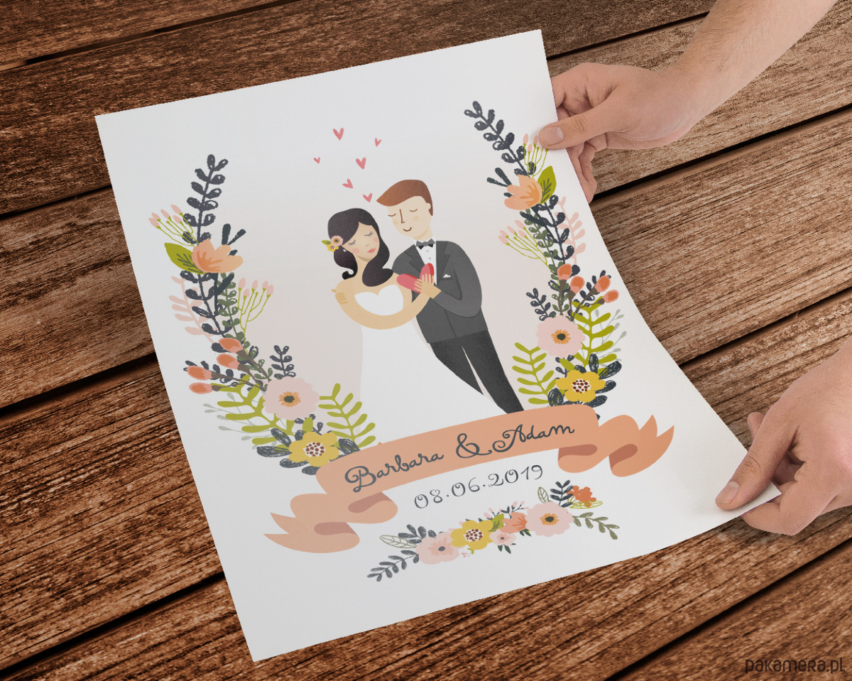 Wspaniała pamiątka z tego jedynego dnia! Grafika także świetnie nadaje się na prezent z okazji ślubu lub rocznicy.