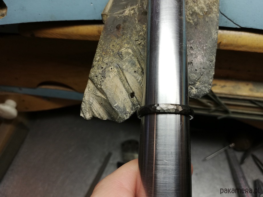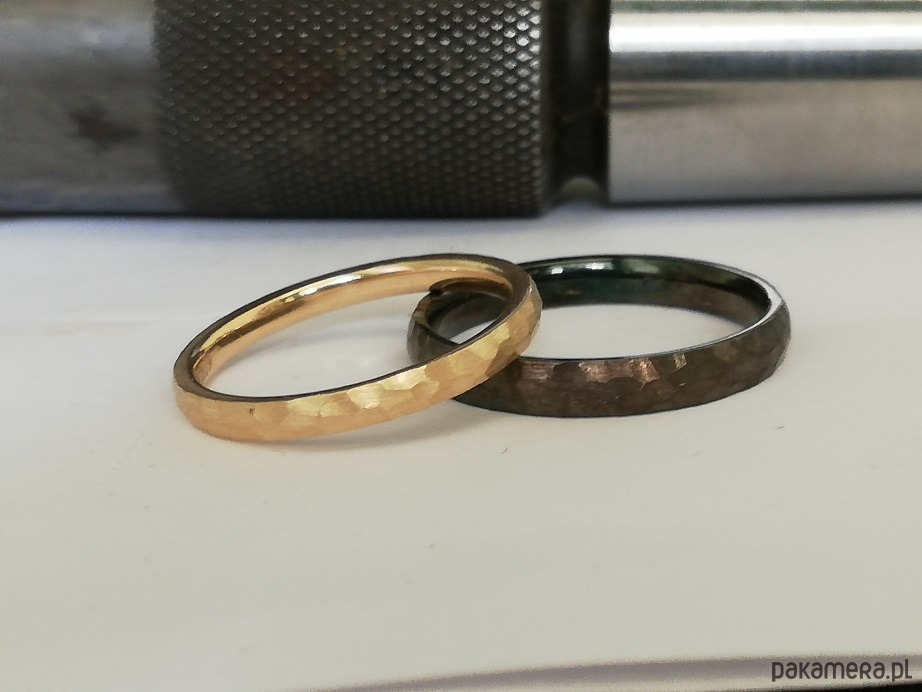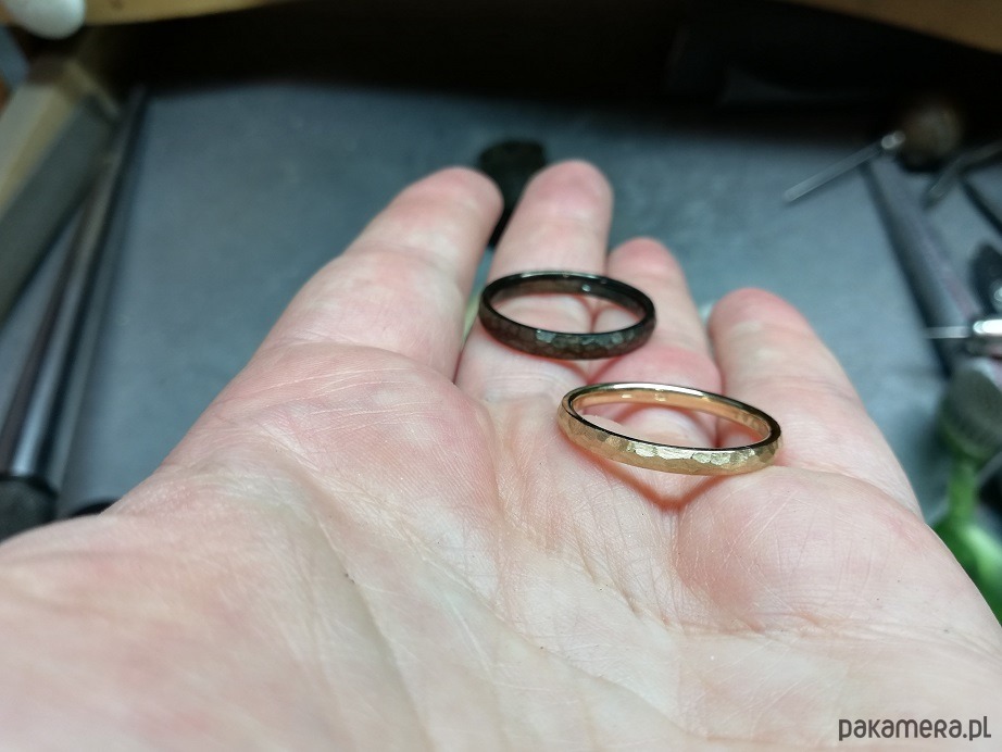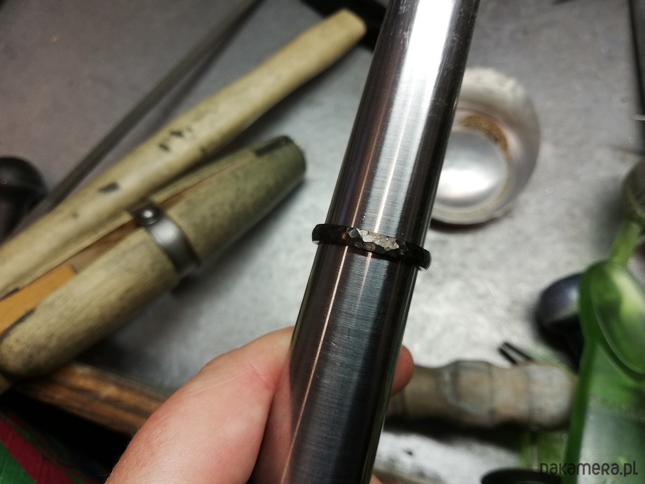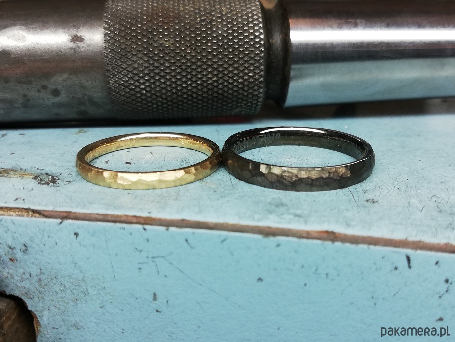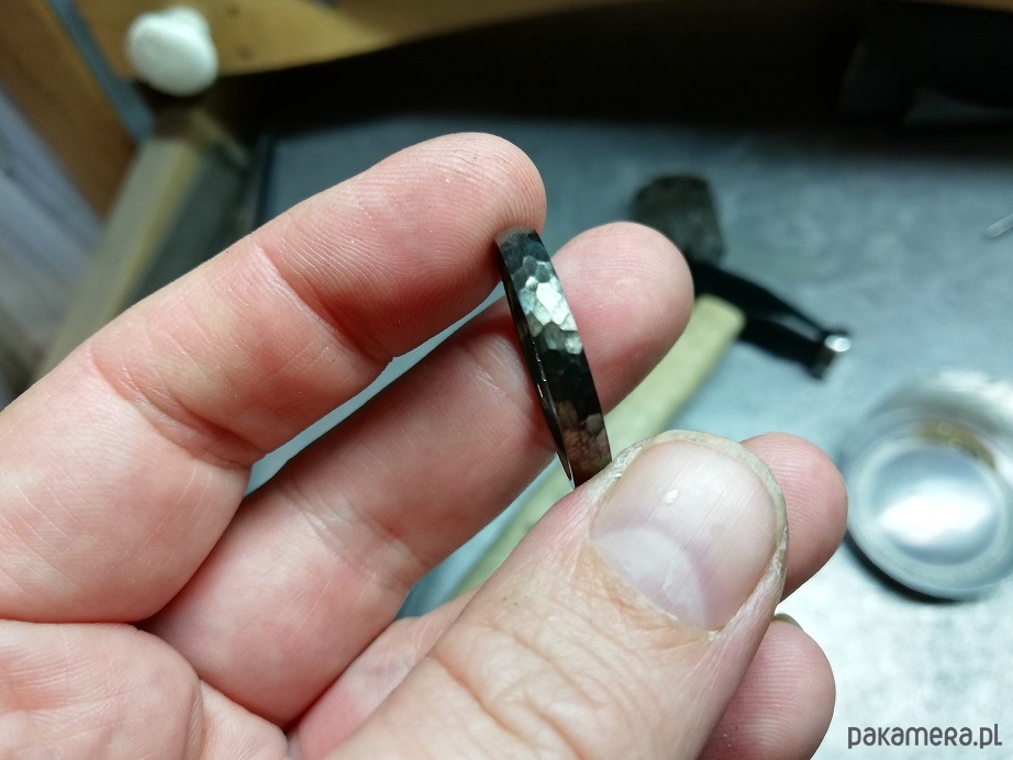 Obrączka jest rodowana, aby nadać jej kolor czarny.
