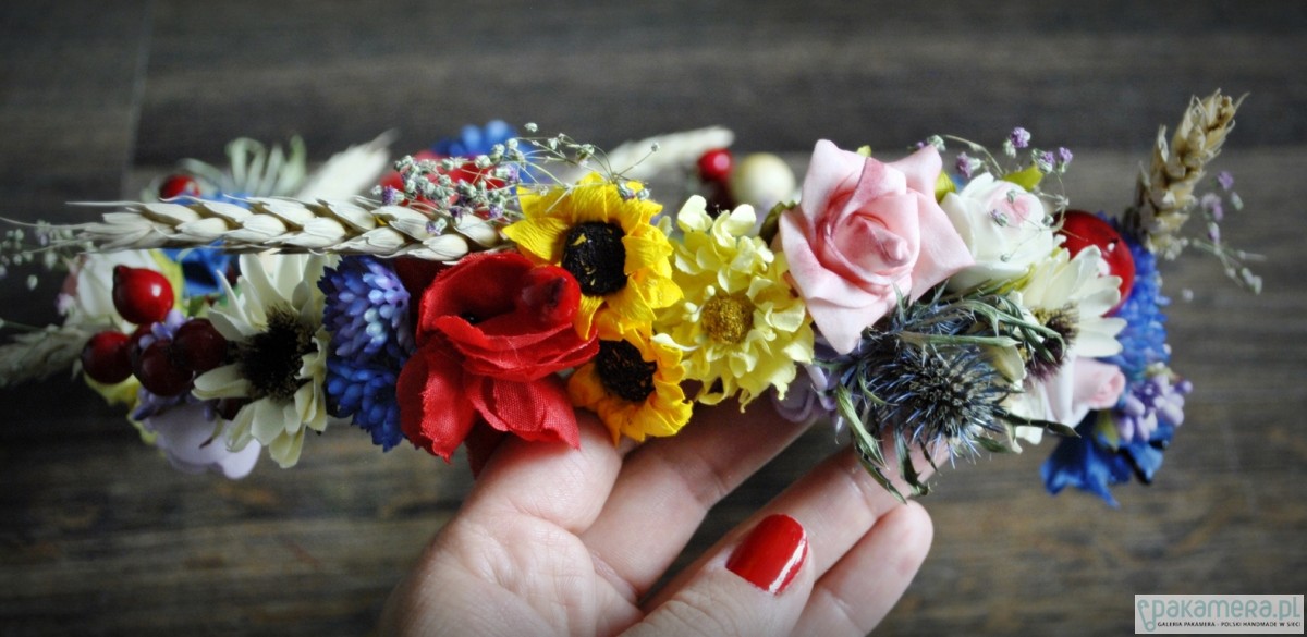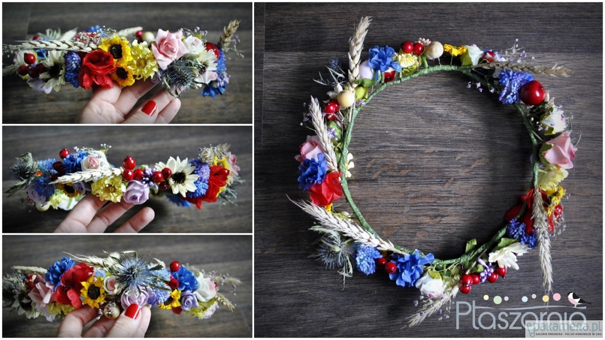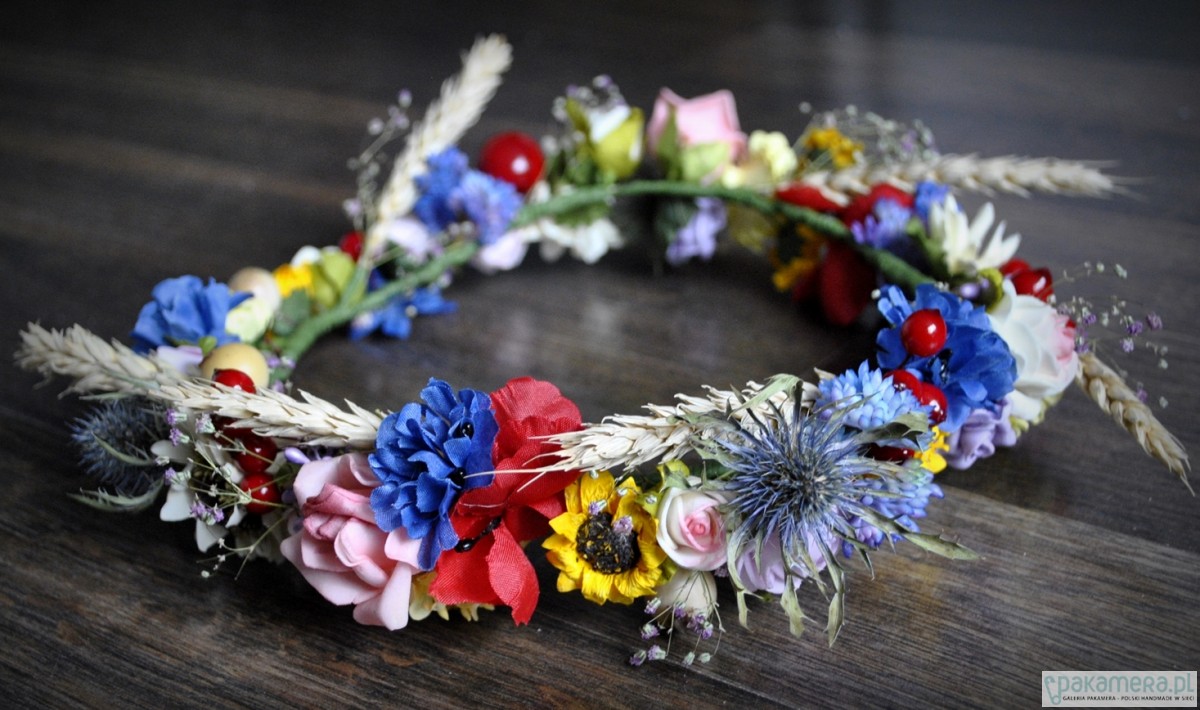 Ptaszarnia wianek ludowy folk boho kłosy maki