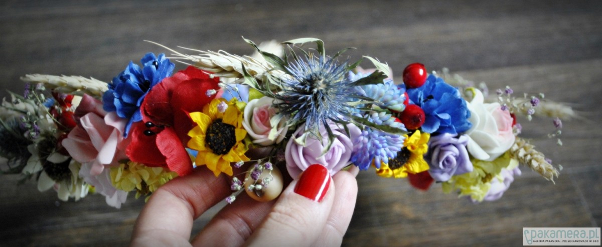 - Kolorowa opaska na głowę z suszonych i stabilizowanych kwiatówProjekt wianki180,00 zł