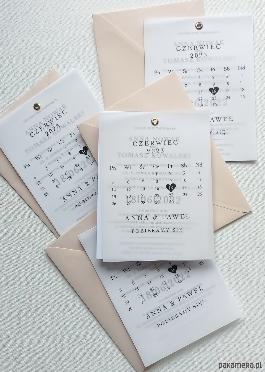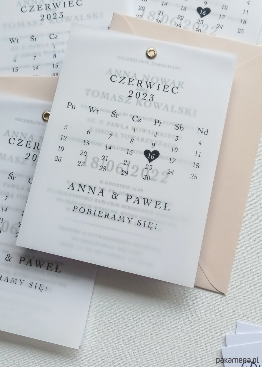 Zaproszenie Ślubne Kalka z Kalendarzem