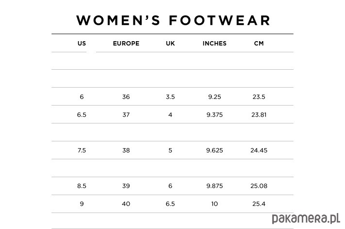 * Proszę sprawdzić tabelę z długością wkładki wewnętrznej w centymetrach i porównać ją z podobnym butem.