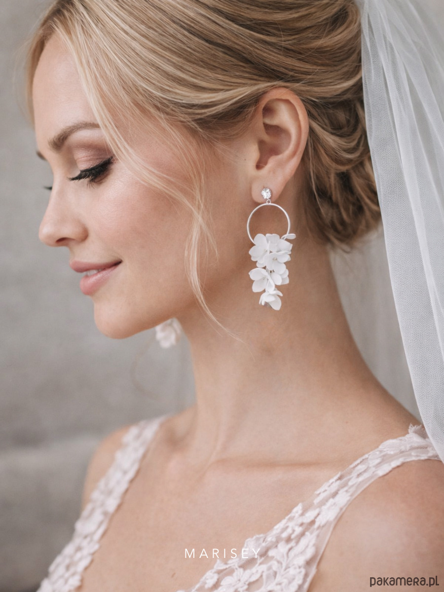Ślubne kolczyki kwiatowe z kółkami LISA