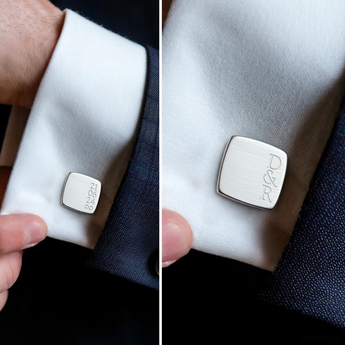 Ślubne spinki do mankietów z inicjałami i datą na ślub lub rocznicę