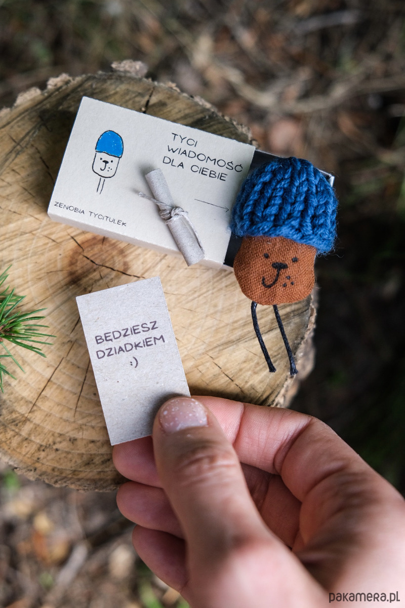 Malutki tyciTulek sam się dla Ciebie spakował i jest gotowy do wysyłki :) Mieszka w pudełeczku od zapałek. Ma ze sobą mini wiadomość do przekazania wybranej osobie.