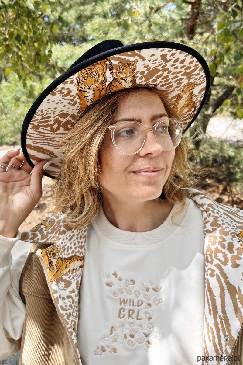 Bluza damska ze śmietankowej dresówki z autorskim haftem. Modny zwierzęcy haft w cętki doda oryginalności Twojej stylizacji - be WILD GRL! . Fason pudełkowy z luźnymi długimi rękawami zakończonymi ściągaczem, rękaw dodatkowo ma przeszycie - stebnowanie. Obniżona linia ramion. Bluza jest funkcjonalna oraz komfortowa w użytkowaniu. Elastyczna guma w pasie jak i na rękawach zapewnia wygodę noszenia.
