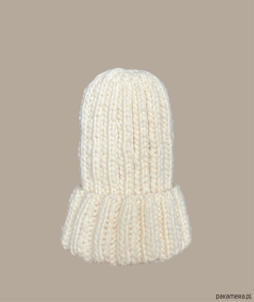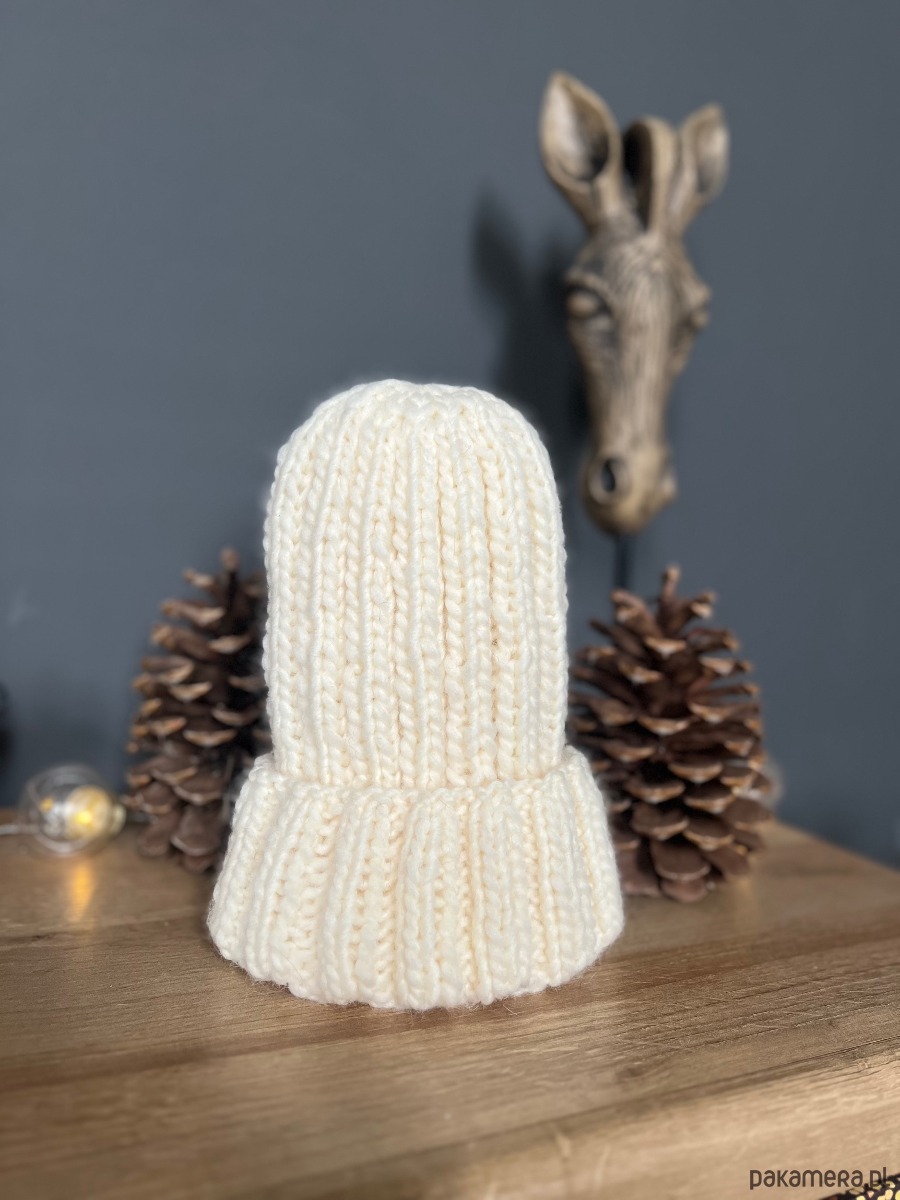 Czapka w kolorze smietankowym, wykonana z naturalnej włóczki 100% wełna