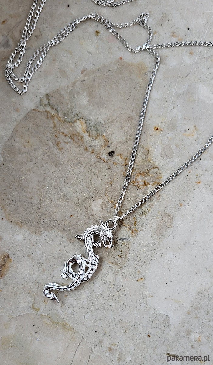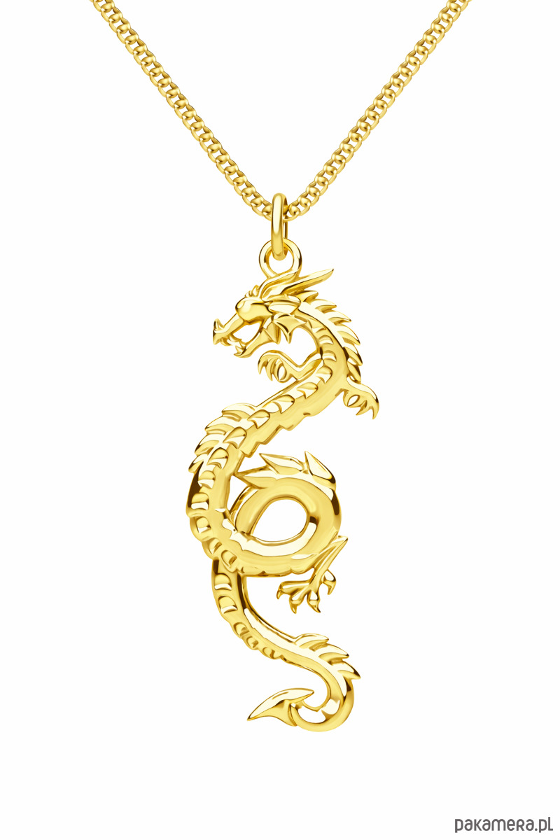 SMOK CHIŃSKI- naszyjnik męski srebro, złoto