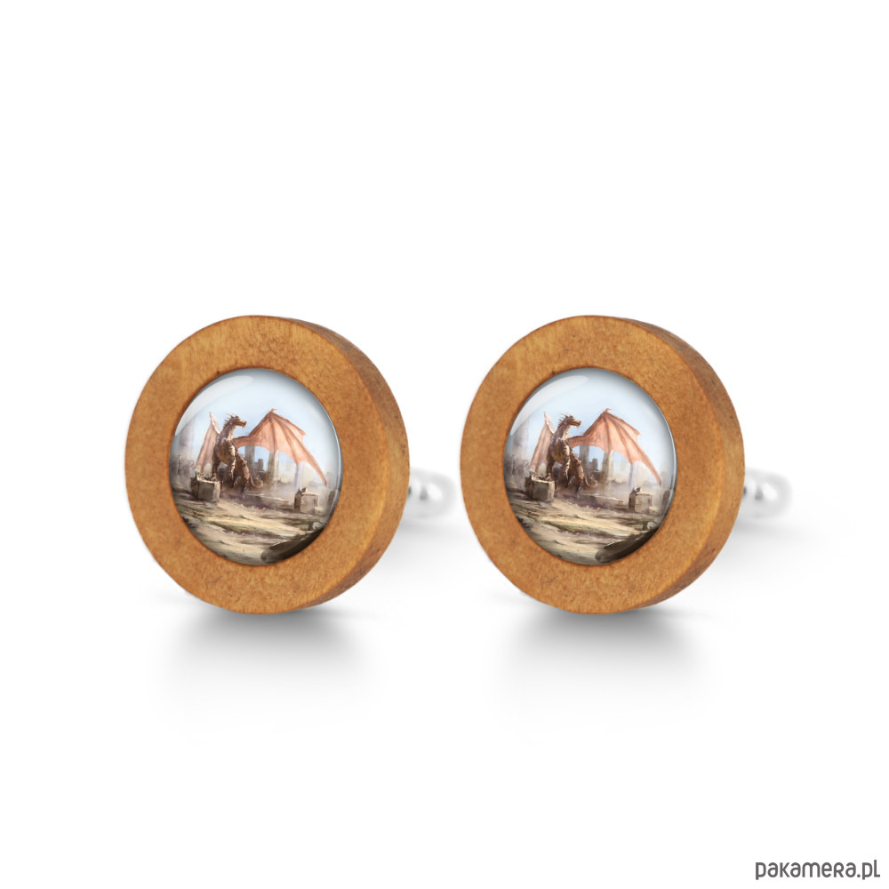 Grafika ukryta w drewnianej oprawie, pod osłoną przeźroczystego półokrągłego szkiełka.