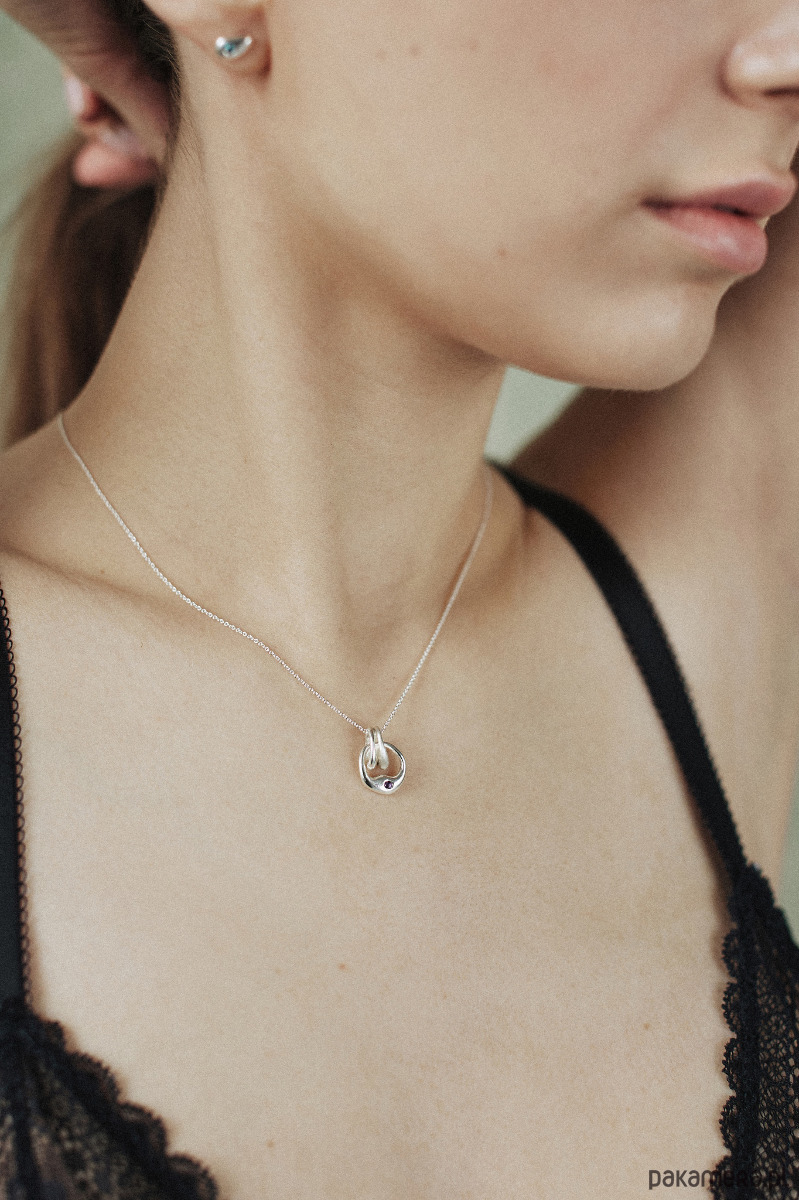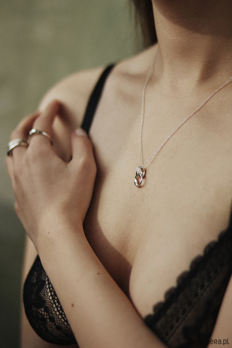 Naszyjnik jest zawieszony na delikatnym srebrnym łańcuszku. Dostępne wymiary łańcuszka to 45, 50, 55, 60 cm długości.