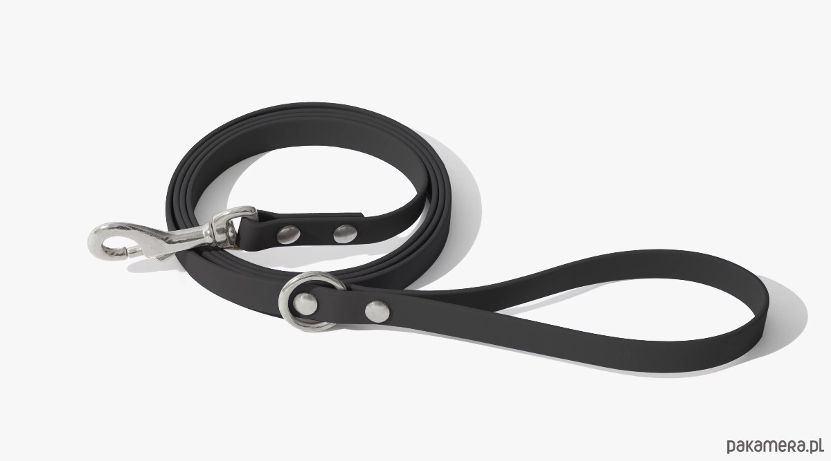 Skład 👀 Taśma: PVC BioThane®; Karabinek, kółko i nity: stal nierdzewna.
