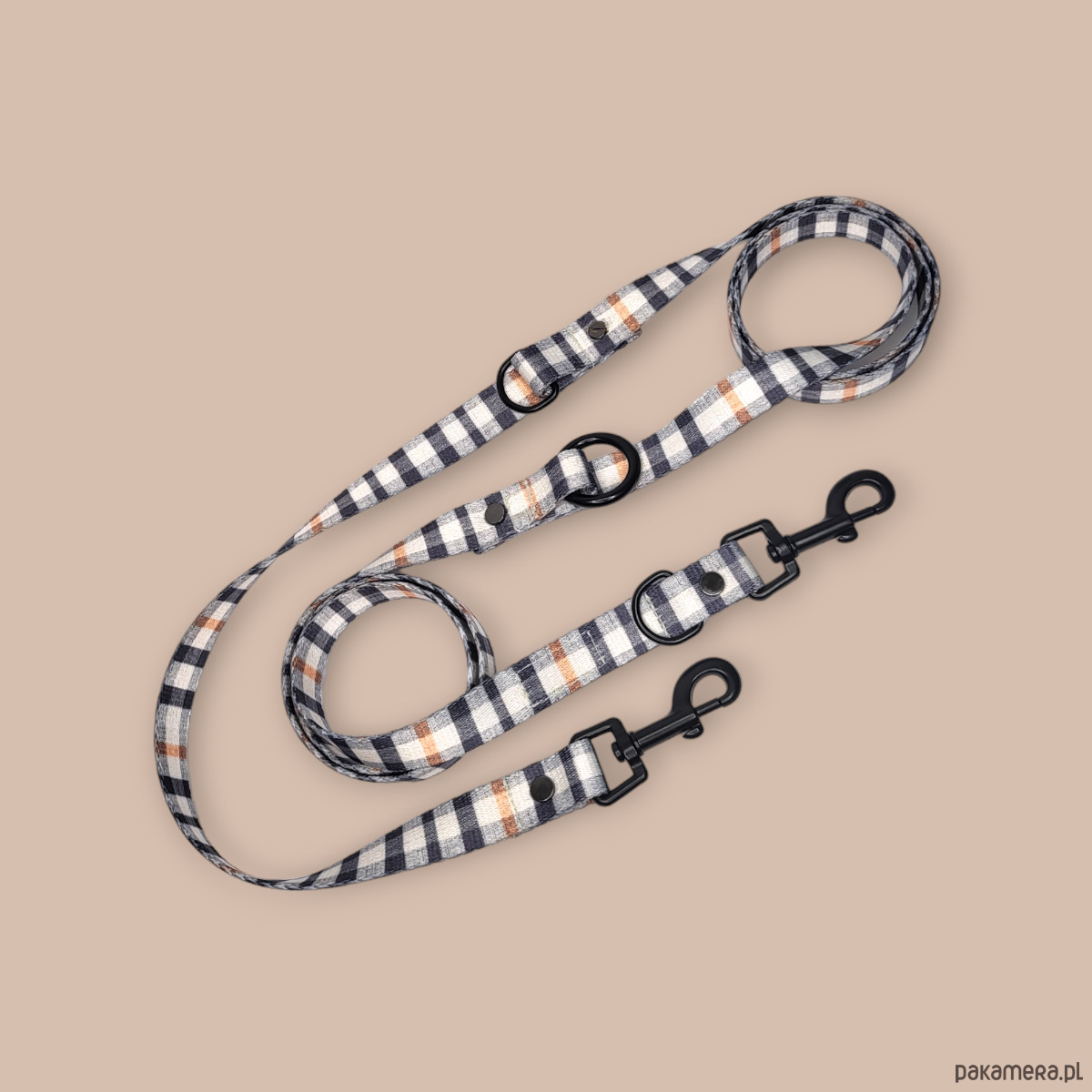 Ręcznie wykonana smycz przepinana z naszym autorskim wzorem. Posiada 3 stopniową regulację długości, dzięki której szybko dostosujesz długość smyczy do potrzeb swojego pupila. Wykonana jest z bardzo wytrzymałej taśmy nośnej wyprodukowanej z włókien poliestrowych pochodzących z recyklingu. Jest miękka, lekka oraz odporna na przetarcia i zerwania. Szerokość smyczy to 2 cm.
