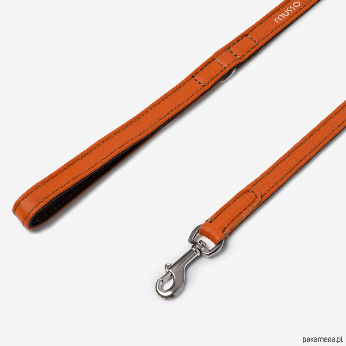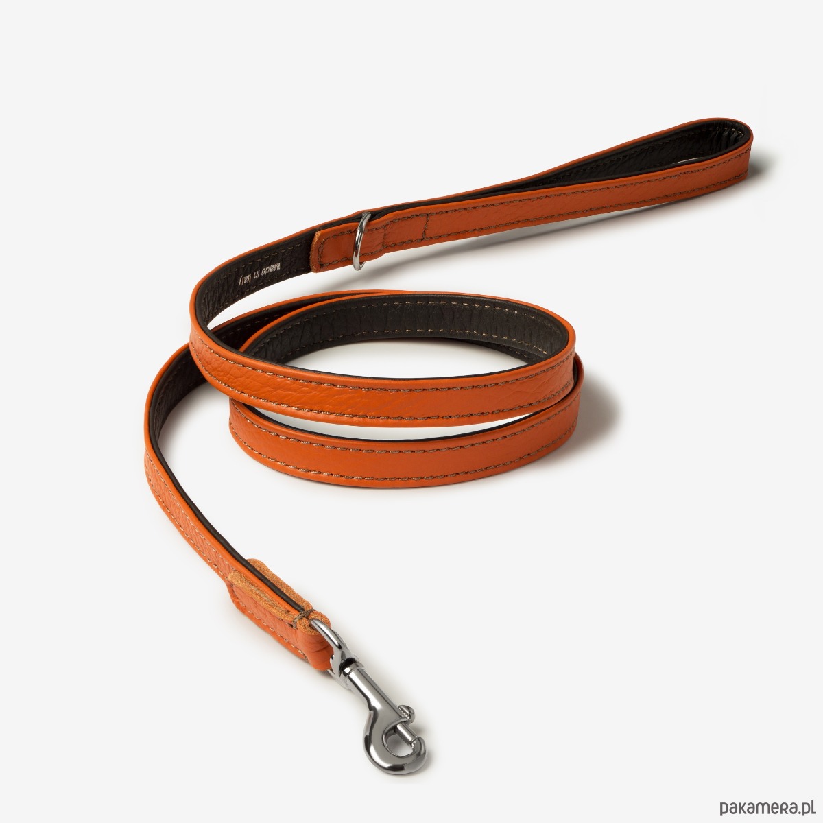 Smycz Duo Bosco łączy czekoladowy brąz z energetycznym pomarańczowym akcentem, tworząc ciepłe i naturalne zestawienie inspirowane barwami lasu. Wykonana z naturalnej, ziarnistej skóry włoskiej, przyciąga uwagę kolorystyką i jakością wykończenia.