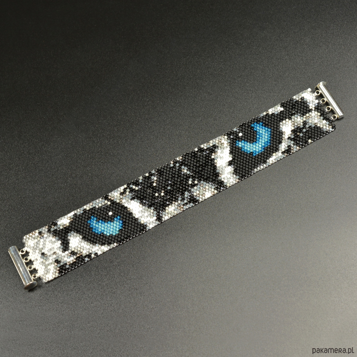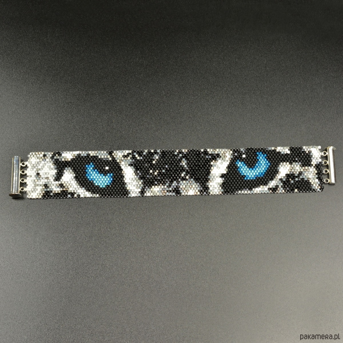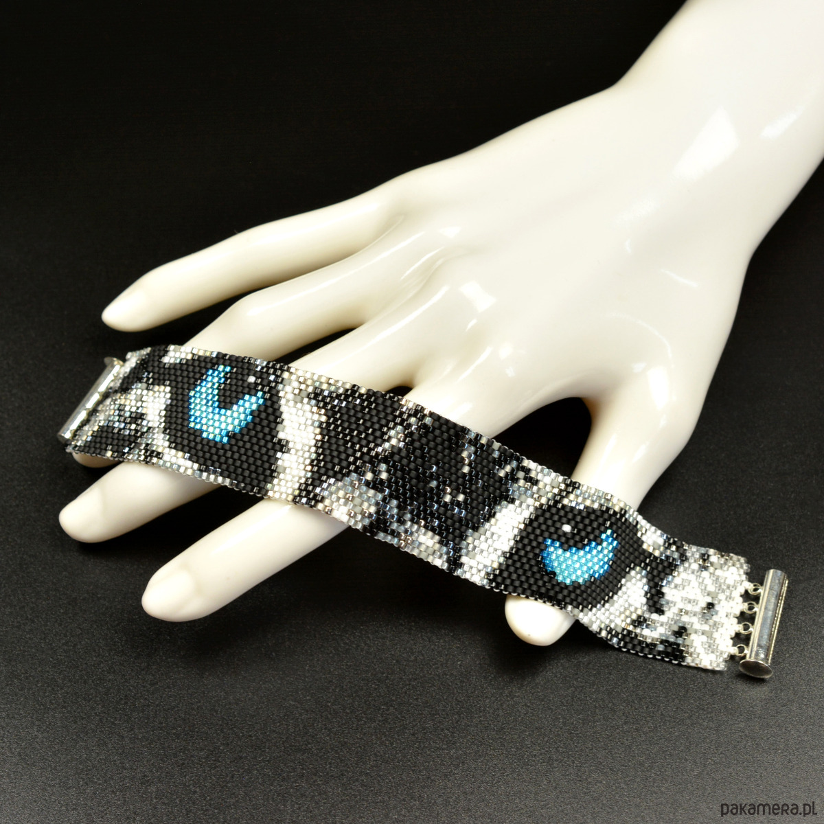 Śnieżna Pantera, wyplatana bransoleta, beading