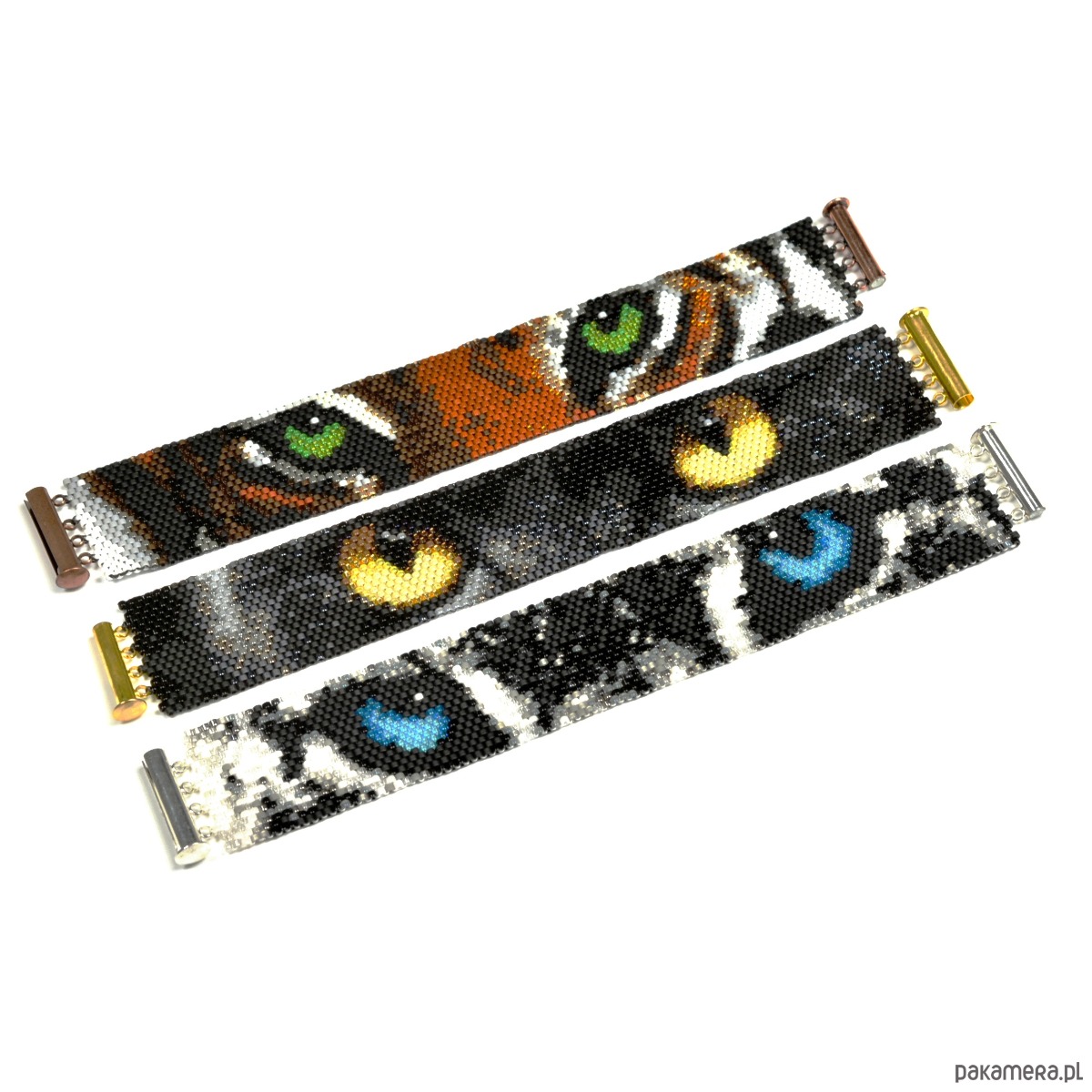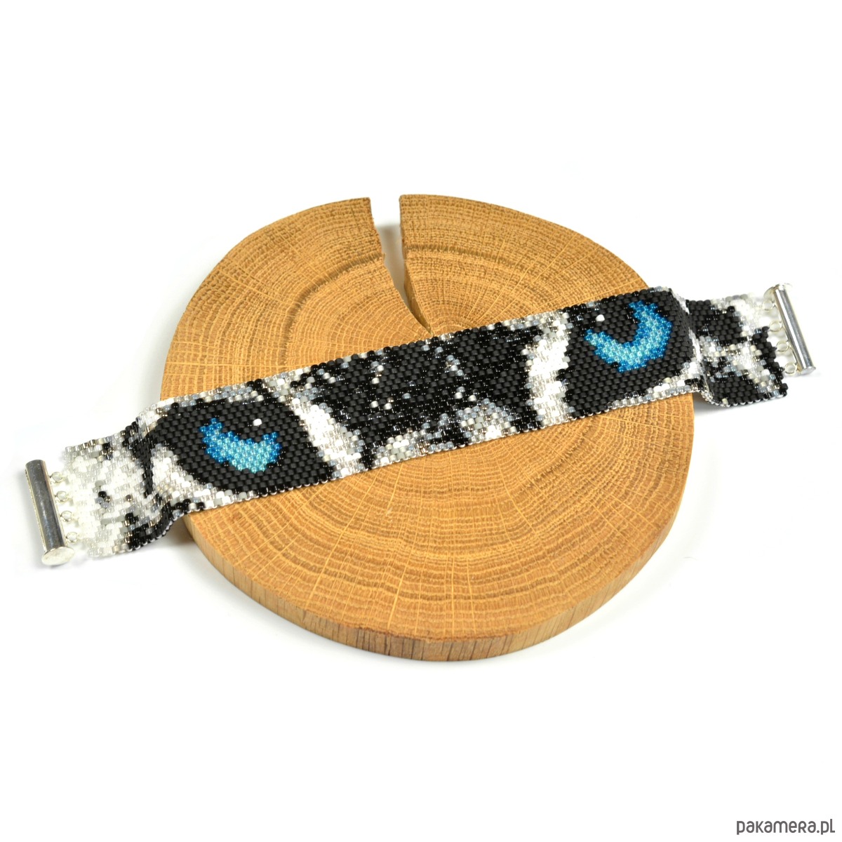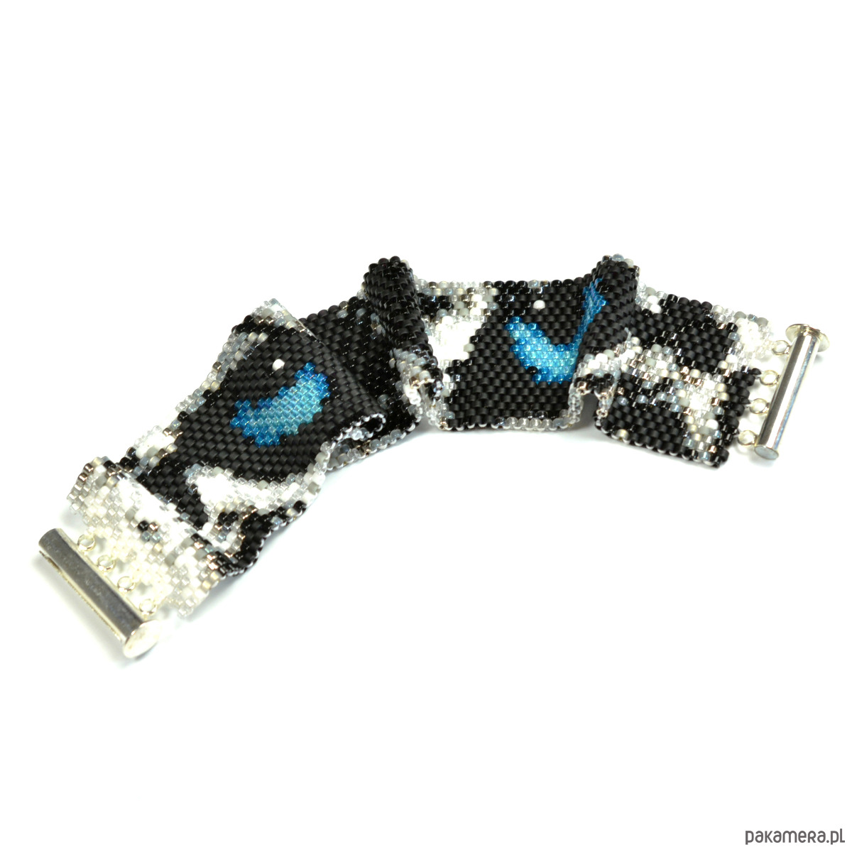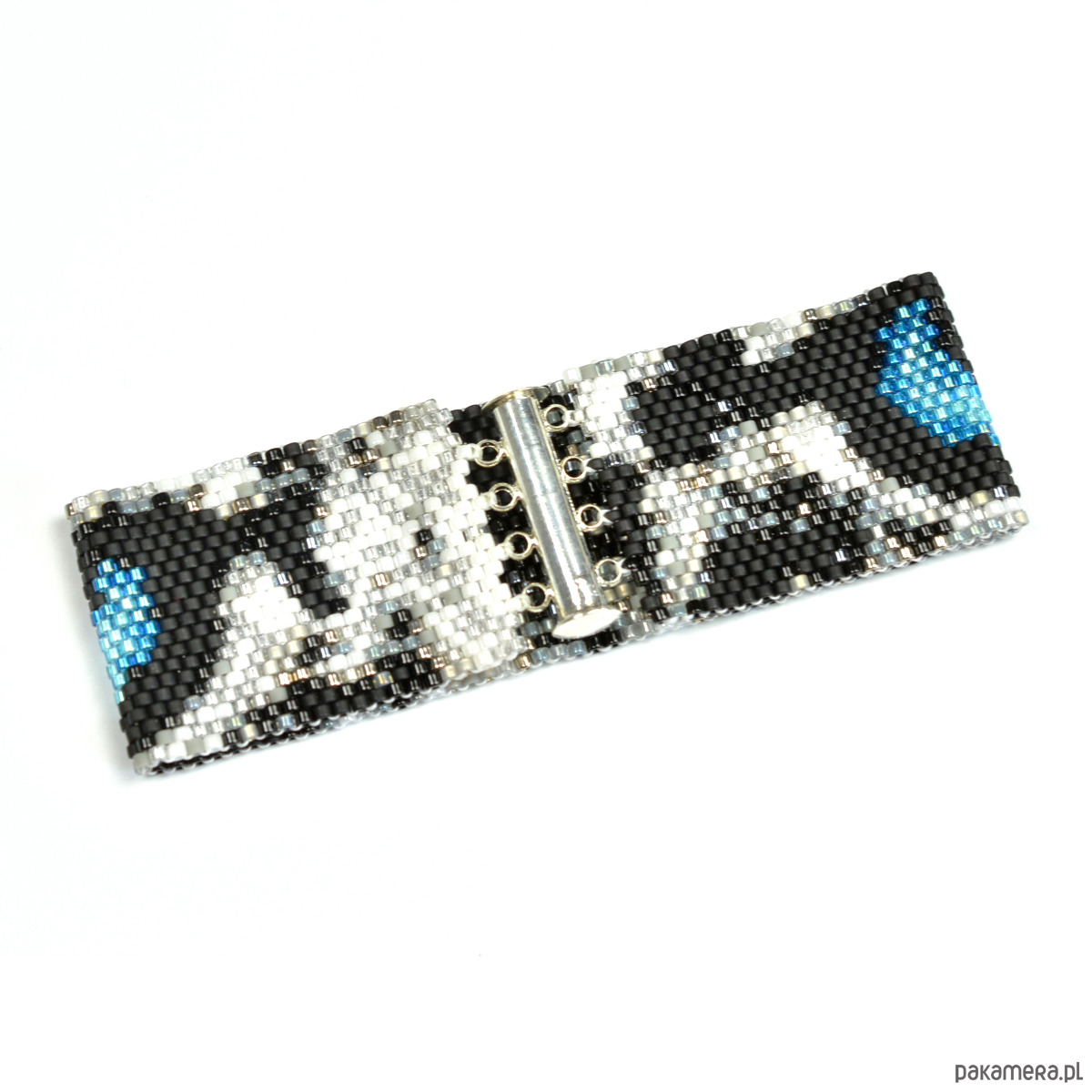 Śnieżna Pantera, wyplatana bransoleta, beading