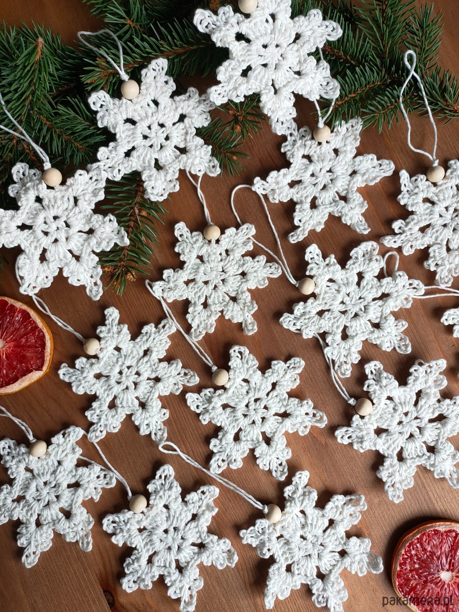 Śnieżynki ozdoby na choinkę na szydełku świąteczne dekoracje