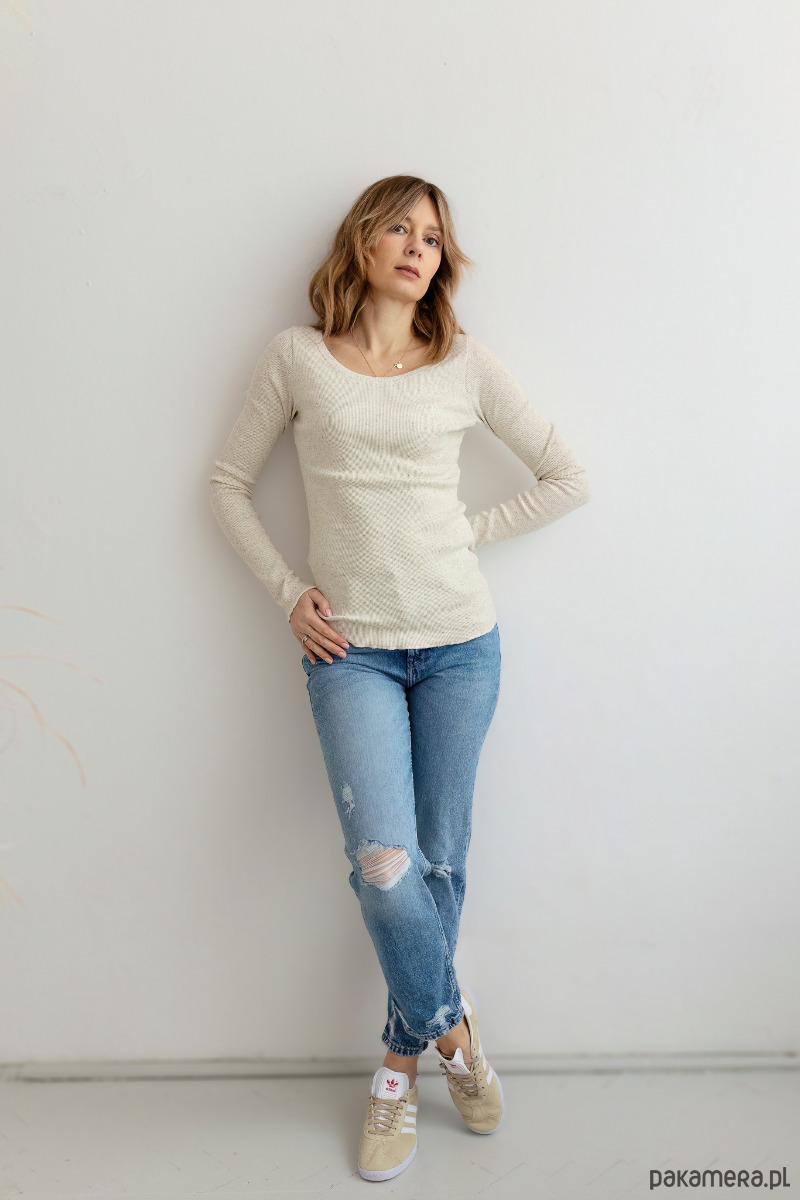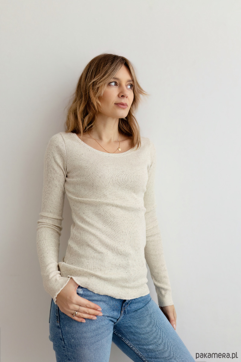 Jedyna i słuszna baza każdej garderoby. Longsleeve to idealna podstawa szafy kapsułowej. Tutaj w odcieniu melanżowego beżu(bawełna z dodatkiem konopi).