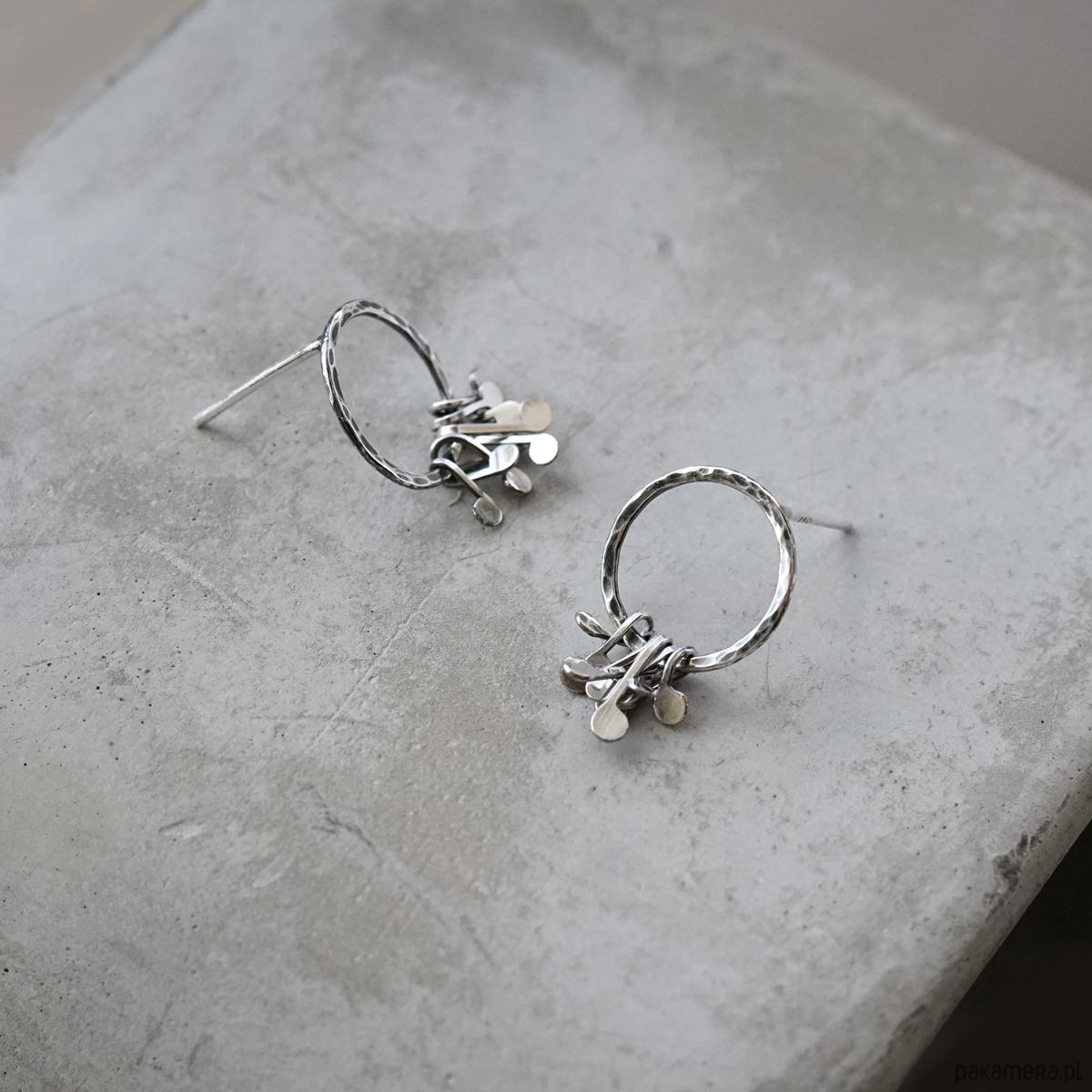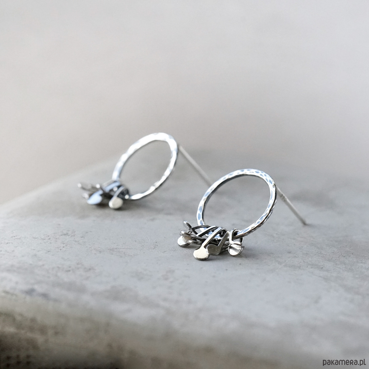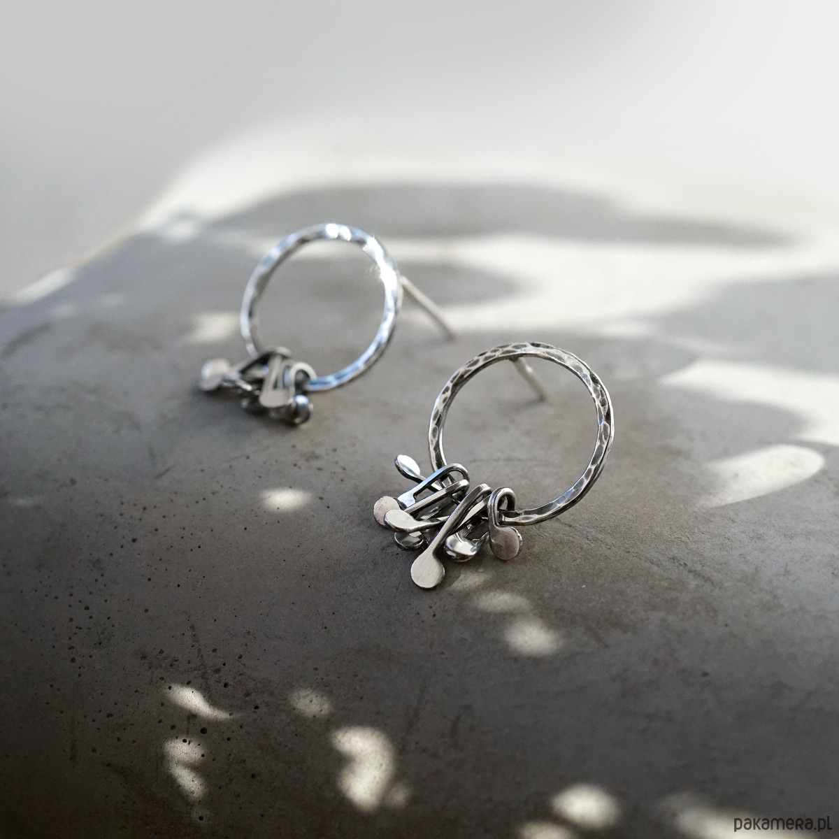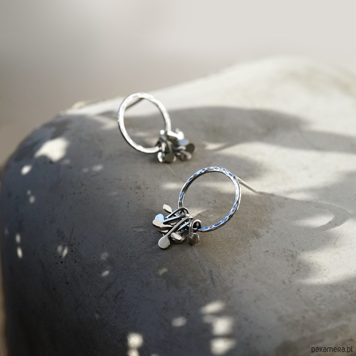 Srebrne, ręcznie wykonane kolczyki. Delikatne, pięknie połyskują w świetle.