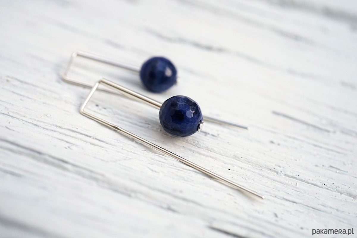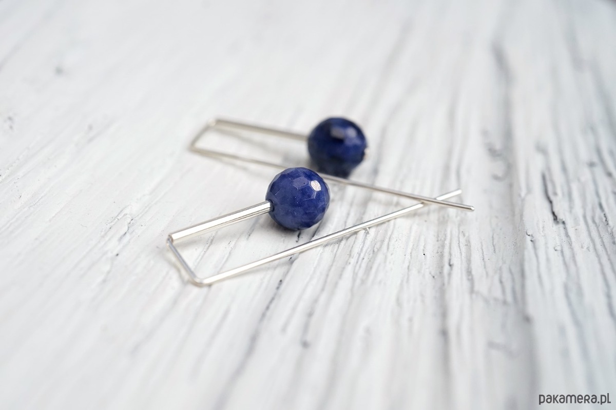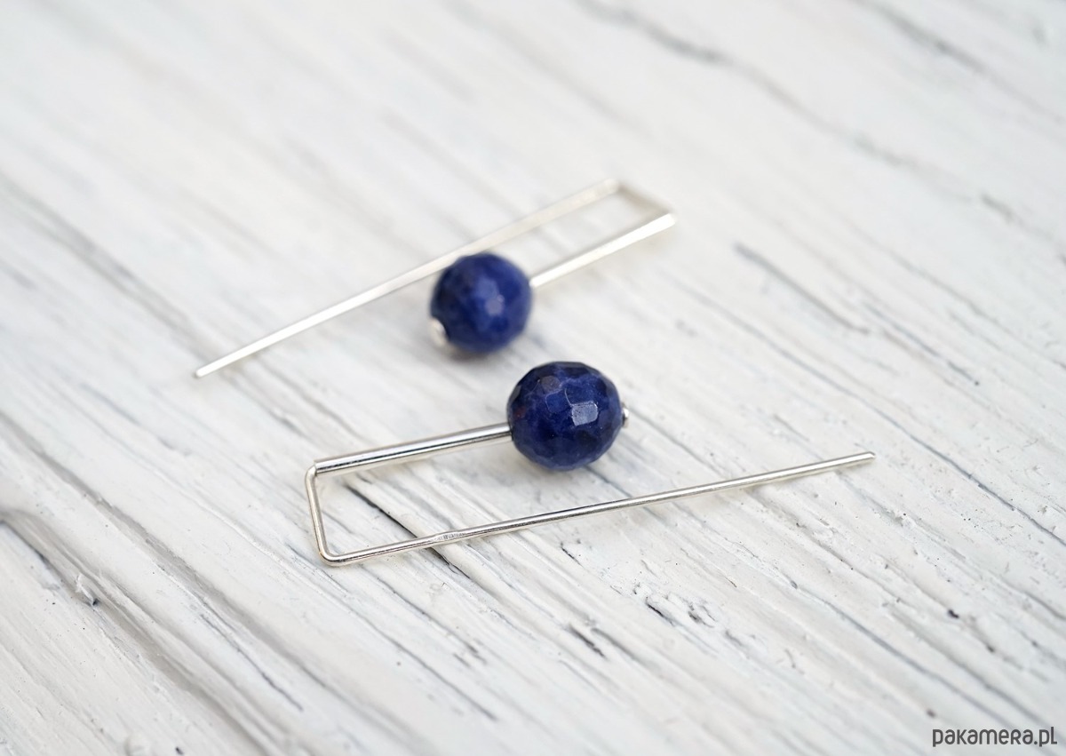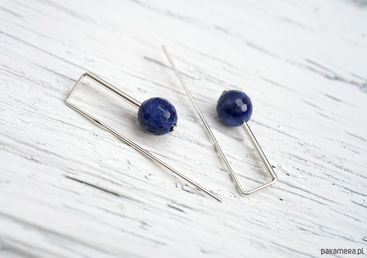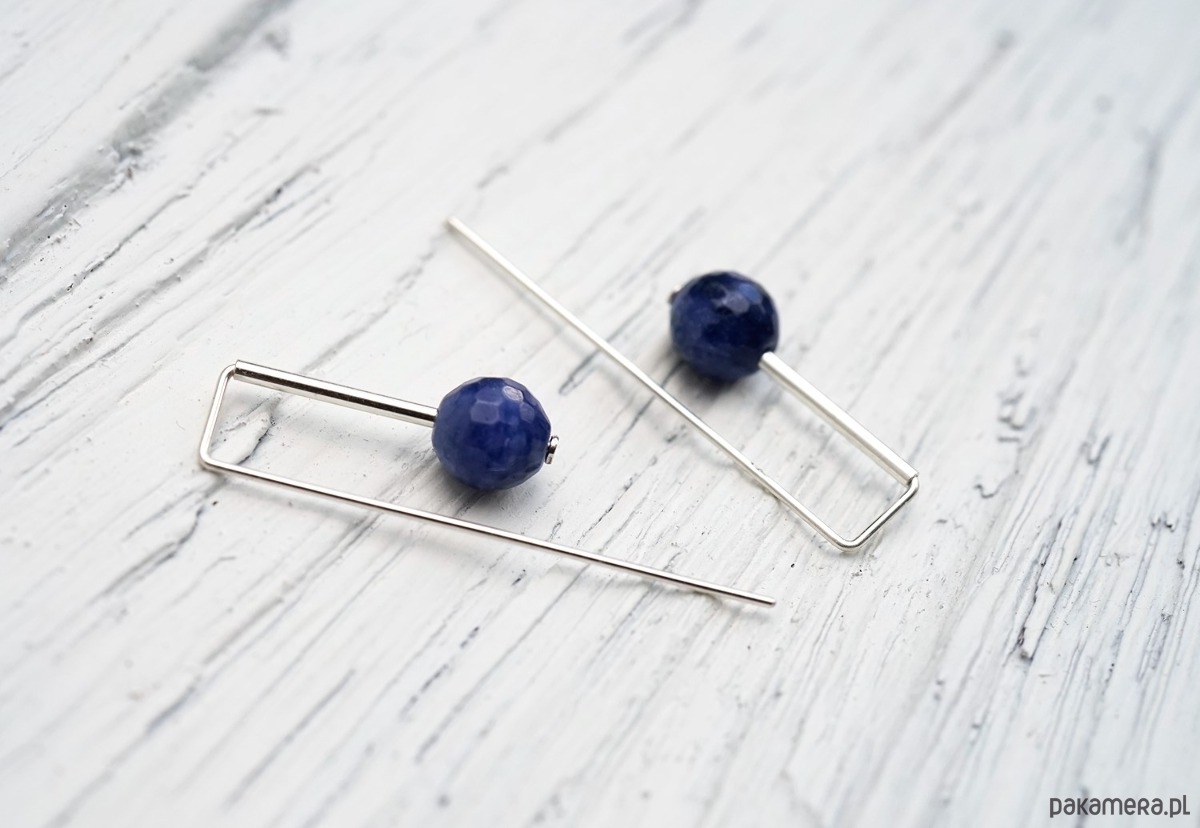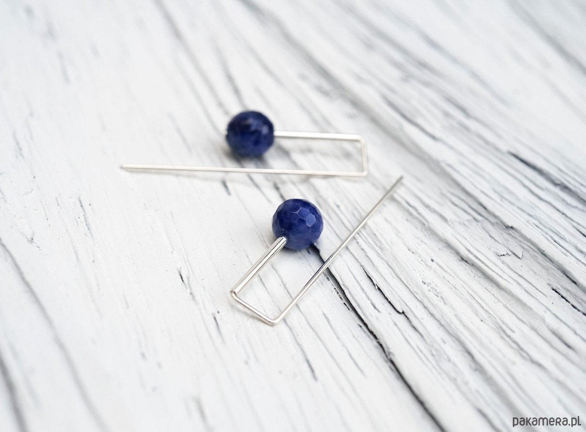 Kolczyki wykonane ze srebra i sodalitu. Geometryczny, minimalistyczny kształt.