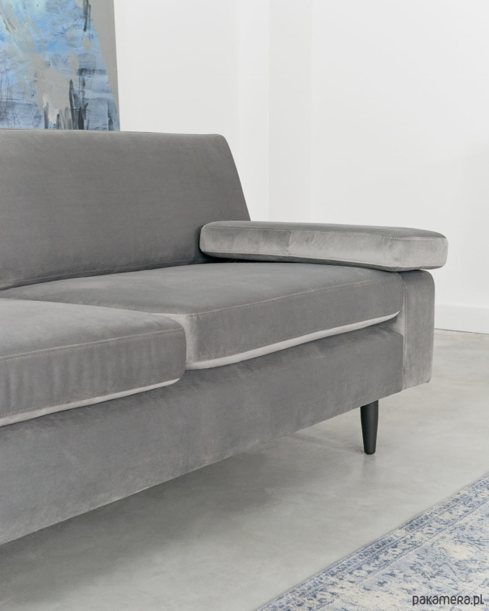 Sofa HELSINKI szary welur, skandynawski design