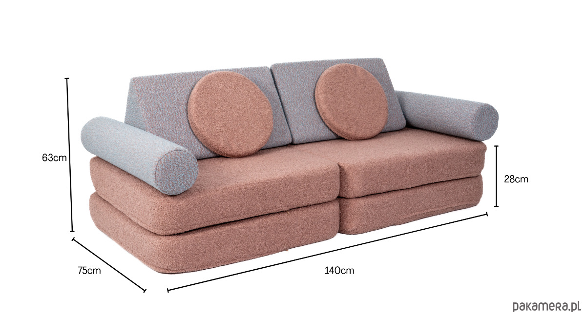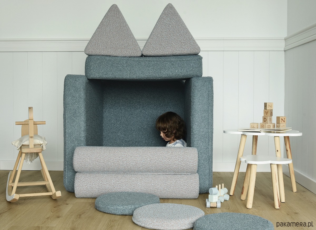 Elastyczna i funkcjonalna – składa się z 8 elementów, które można dowolnie łączyć i ustawiać, aby za każdym razem odkrywać nowe możliwości. Dzięki nowoczesnej formie i kompaktowym rozmiarom znajdzie swoje miejsce zarówno w pokoju dziecka, salonie, jak i kąciku do zabawy. Może być miejscem do budowania baz, wspólnego czytania, relaksu czy nocowania – a latem sprawdzi się także w ogrodzie lub na taras