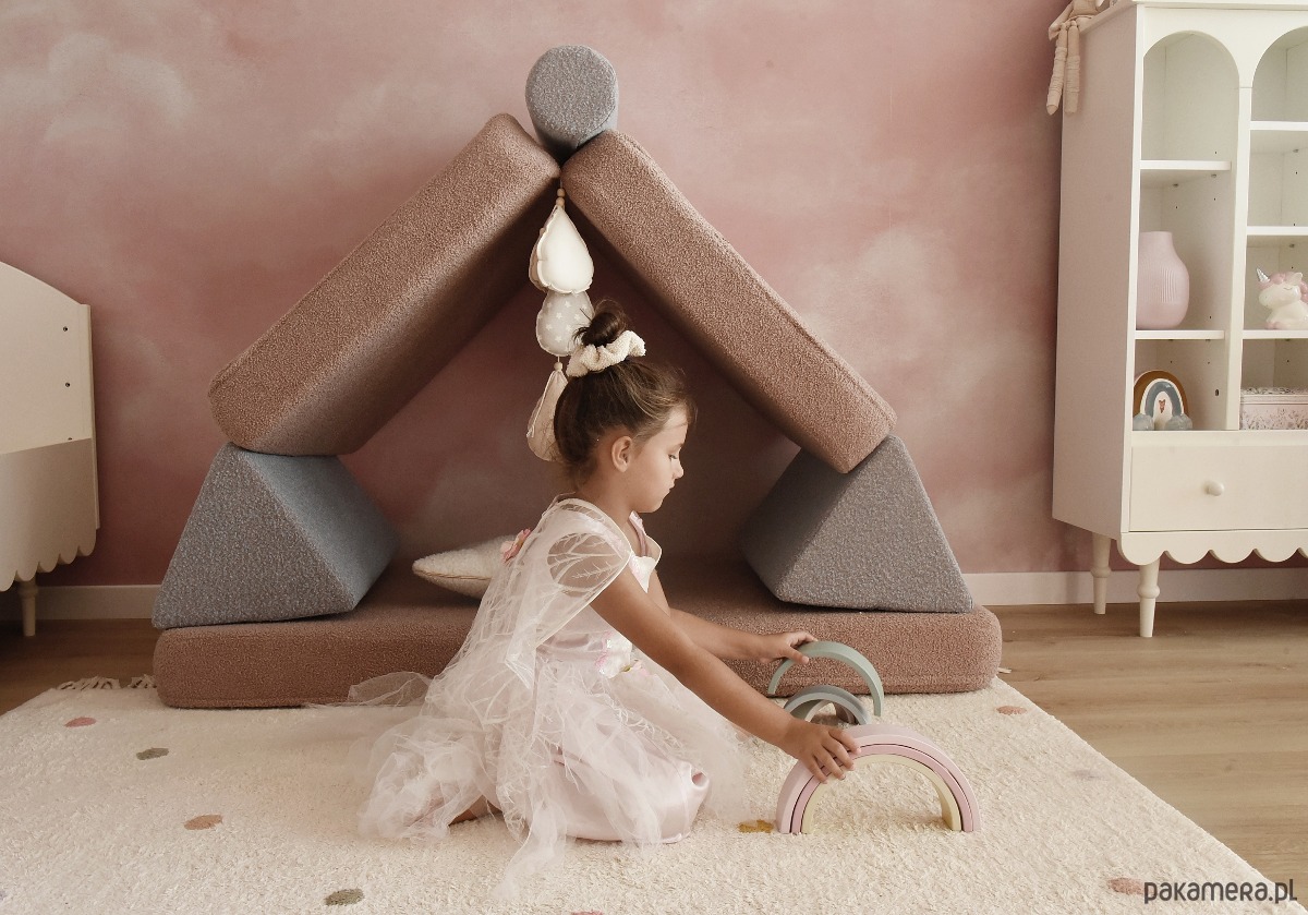 Elastyczna i funkcjonalna – składa się z 8 elementów, które można dowolnie łączyć i ustawiać, aby za każdym razem odkrywać nowe możliwości. Dzięki nowoczesnej formie i kompaktowym rozmiarom znajdzie swoje miejsce zarówno w pokoju dziecka, salonie, jak i kąciku do zabawy. Może być miejscem do budowania baz, wspólnego czytania, relaksu czy nocowania – a latem sprawdzi się także w ogrodzie lub na taras