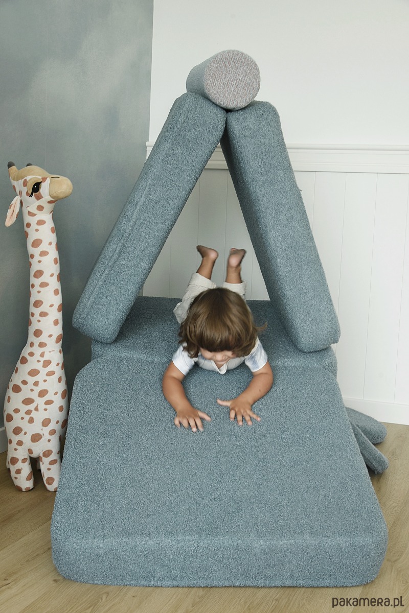Elastyczna i funkcjonalna – składa się z 8 elementów, które można dowolnie łączyć i ustawiać, aby za każdym razem odkrywać nowe możliwości. Dzięki nowoczesnej formie i kompaktowym rozmiarom znajdzie swoje miejsce zarówno w pokoju dziecka, salonie, jak i kąciku do zabawy. Może być miejscem do budowania baz, wspólnego czytania, relaksu czy nocowania – a latem sprawdzi się także w ogrodzie lub na taras