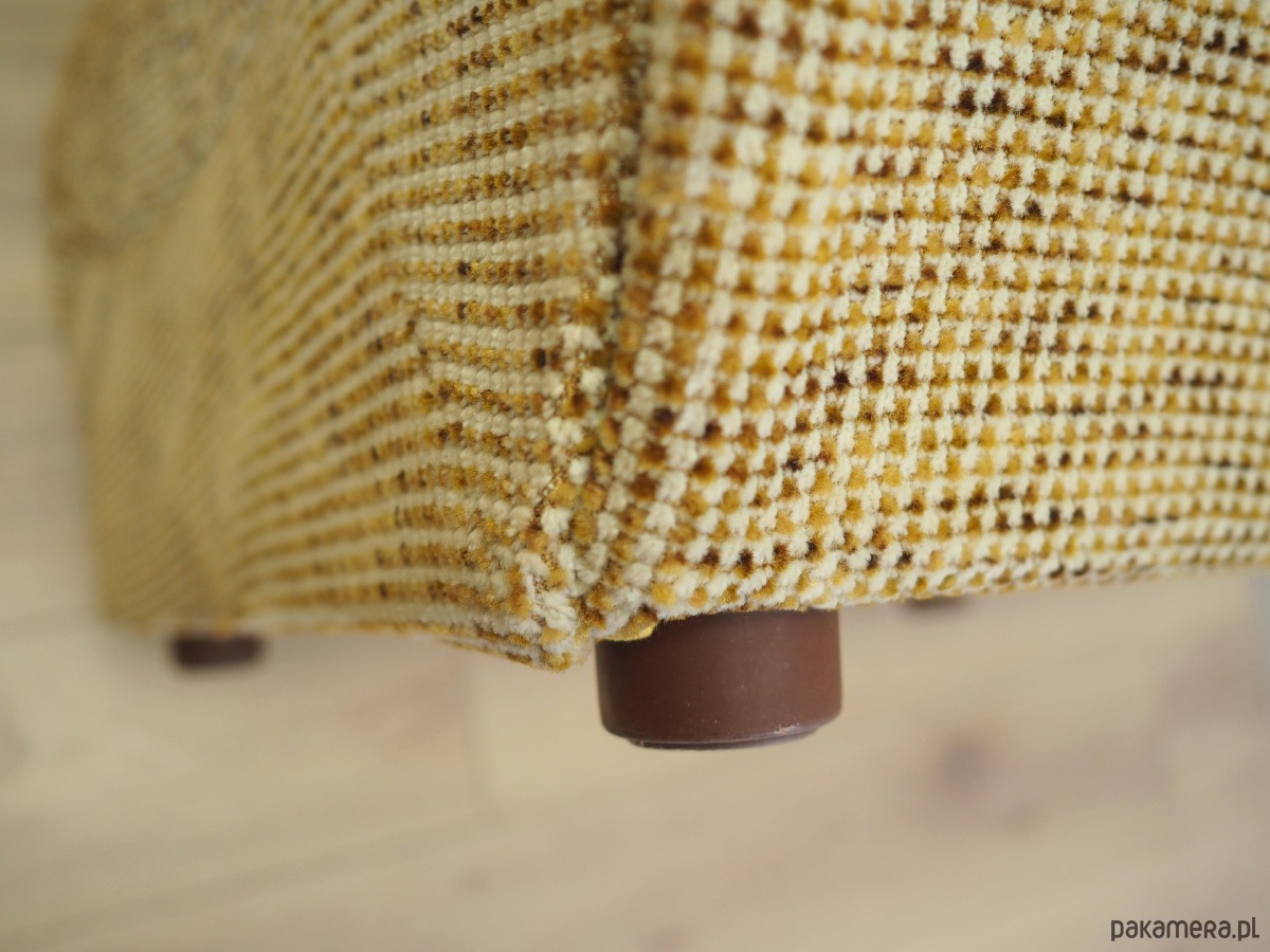 Nogi wykonane z tworzywa sztucznego. Sofa pokryta jest oryginalną tapicerką. Wykorzystano wysokiej jakości tkaninę w kolorze brązowym. Sofa składa się z czterech elementów, które po rozłączeniu mogą służyć jako wygodne fotele.