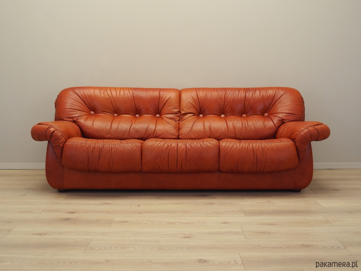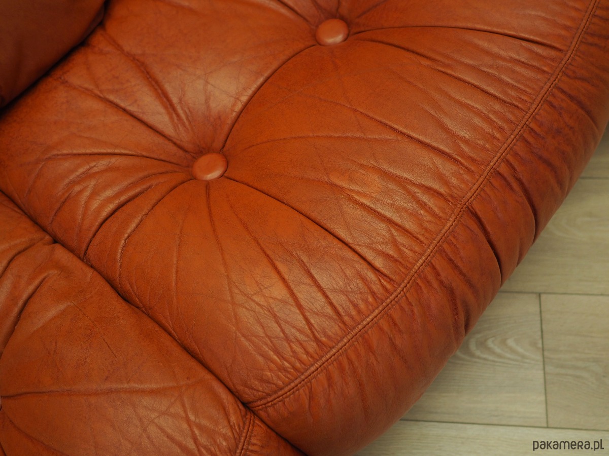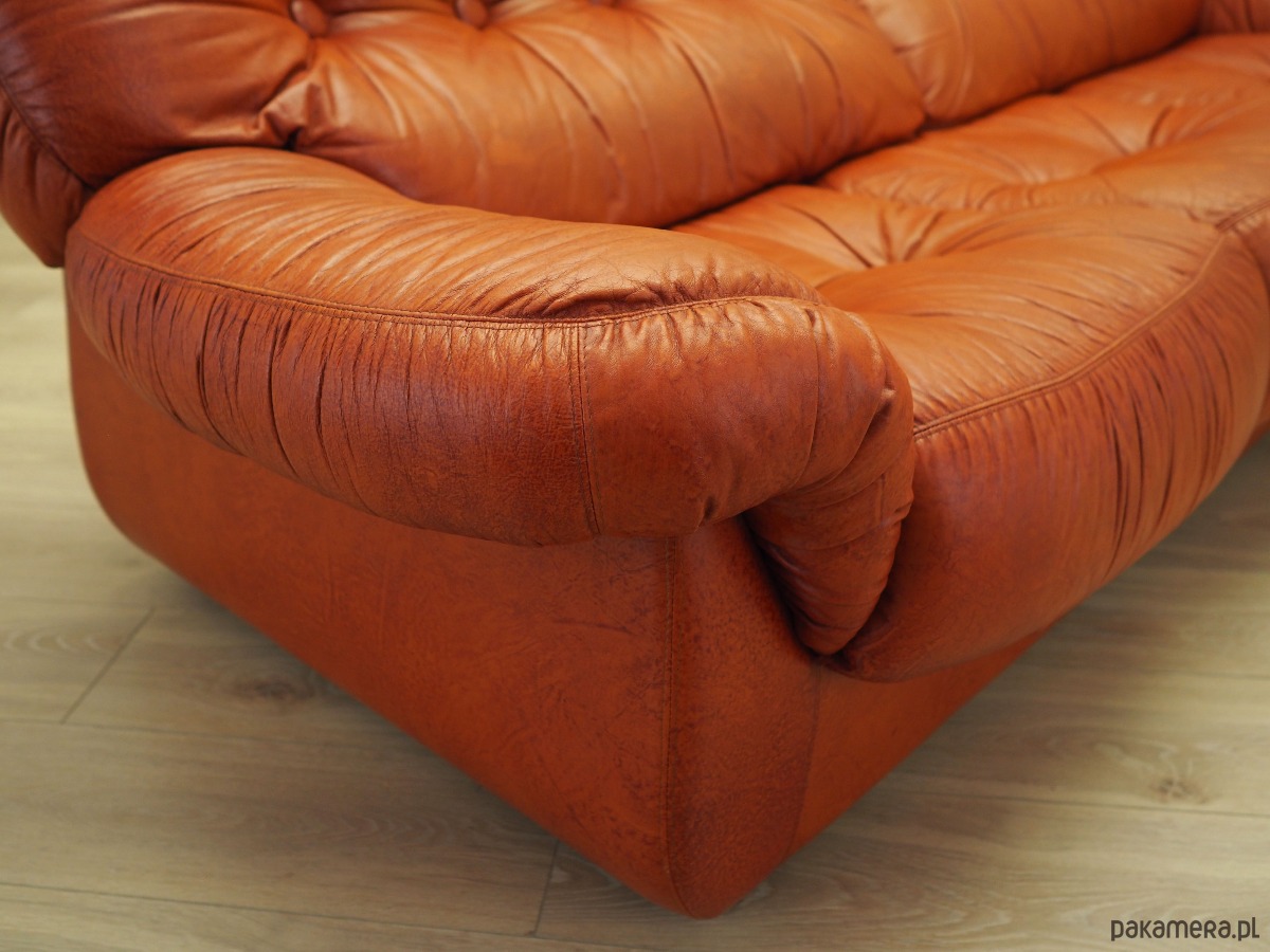 Sofa skórzana ruda, włoski design, lata 70, produkcja: PelleRossi