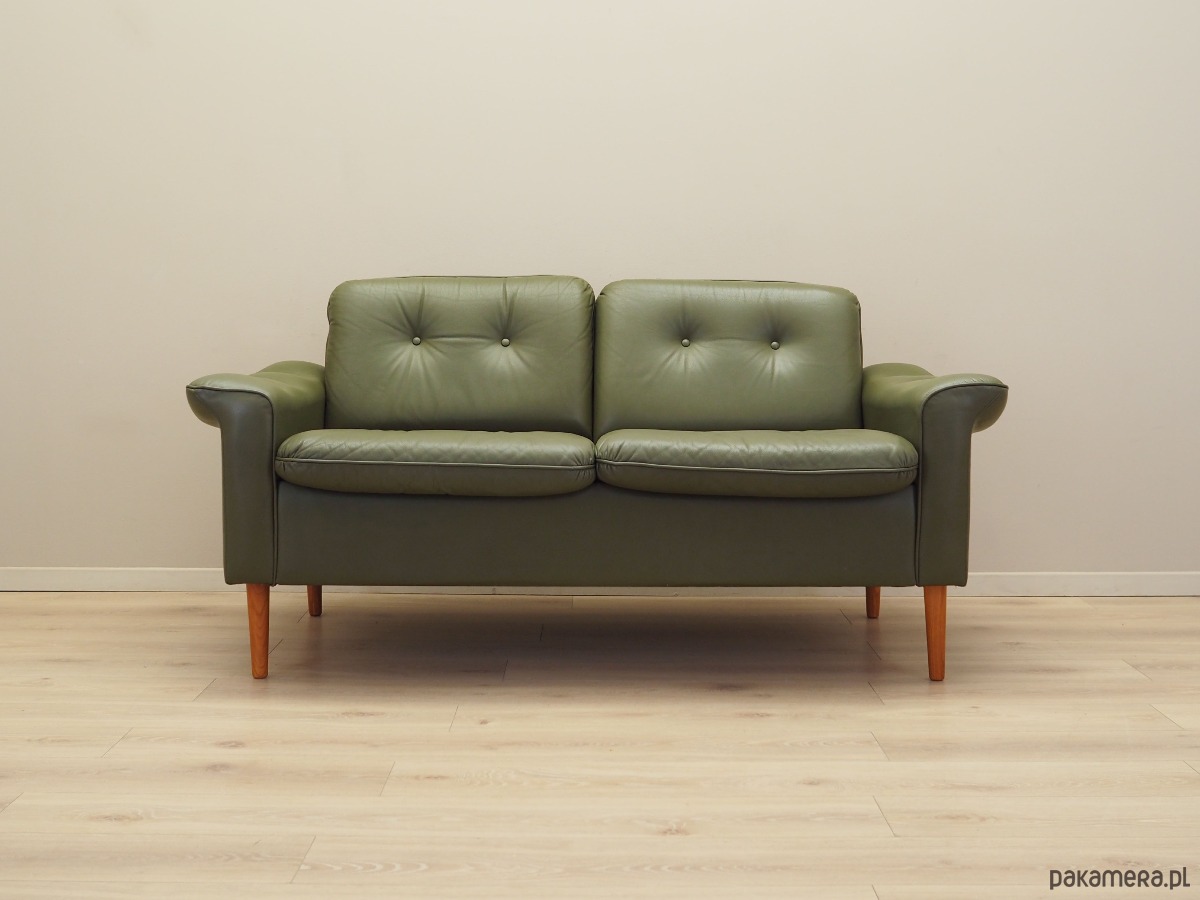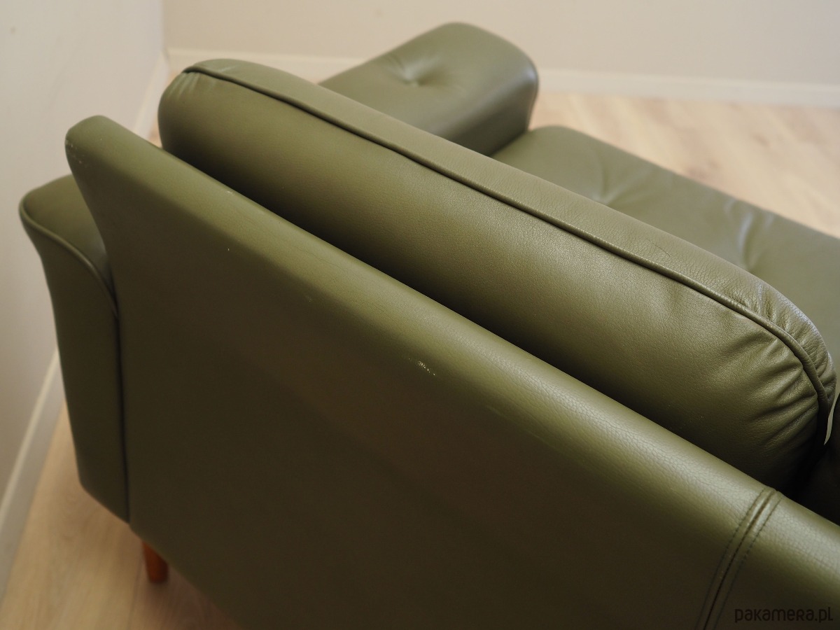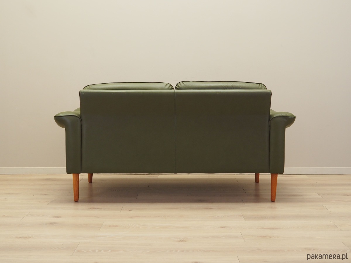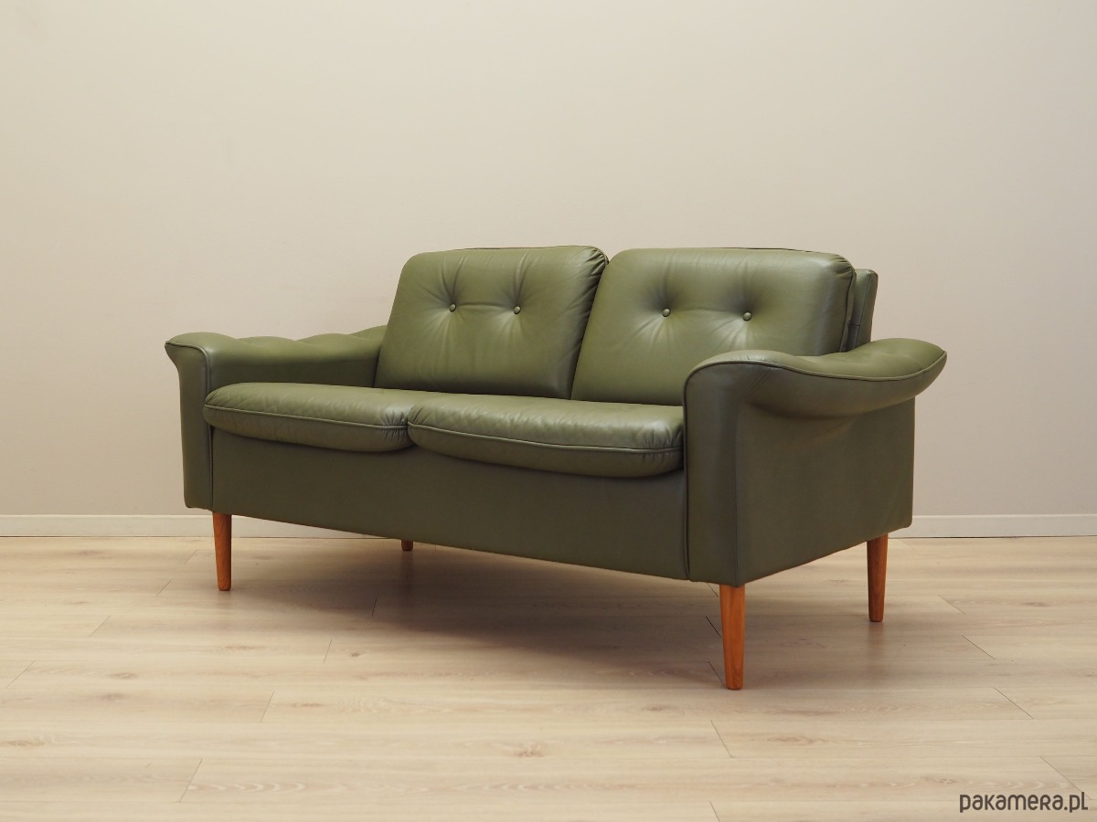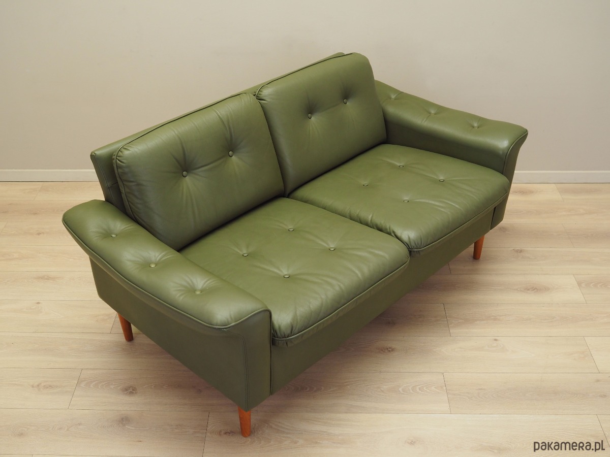 Sofa skórzana zielona, duński design, lata 70, produkcja: Dania