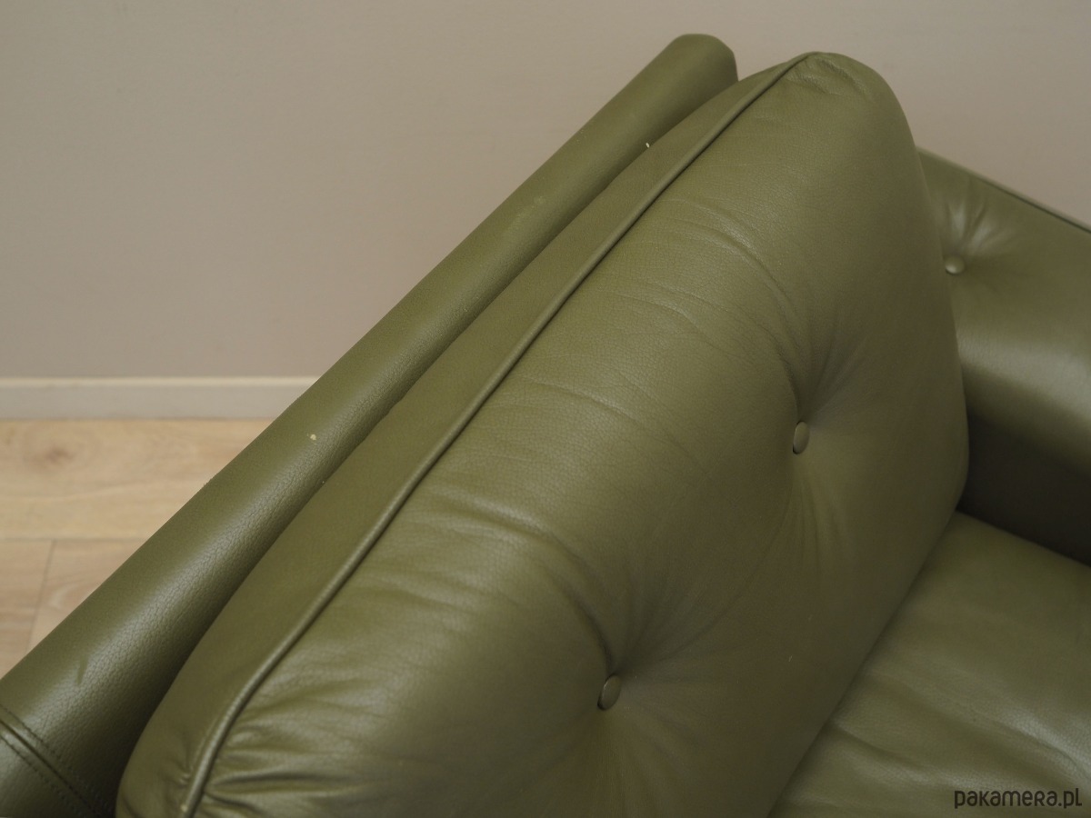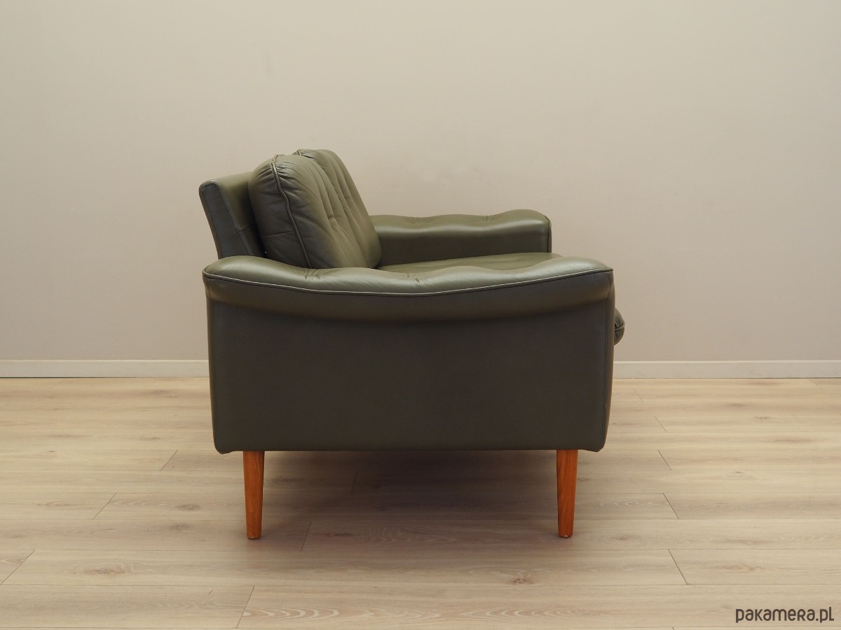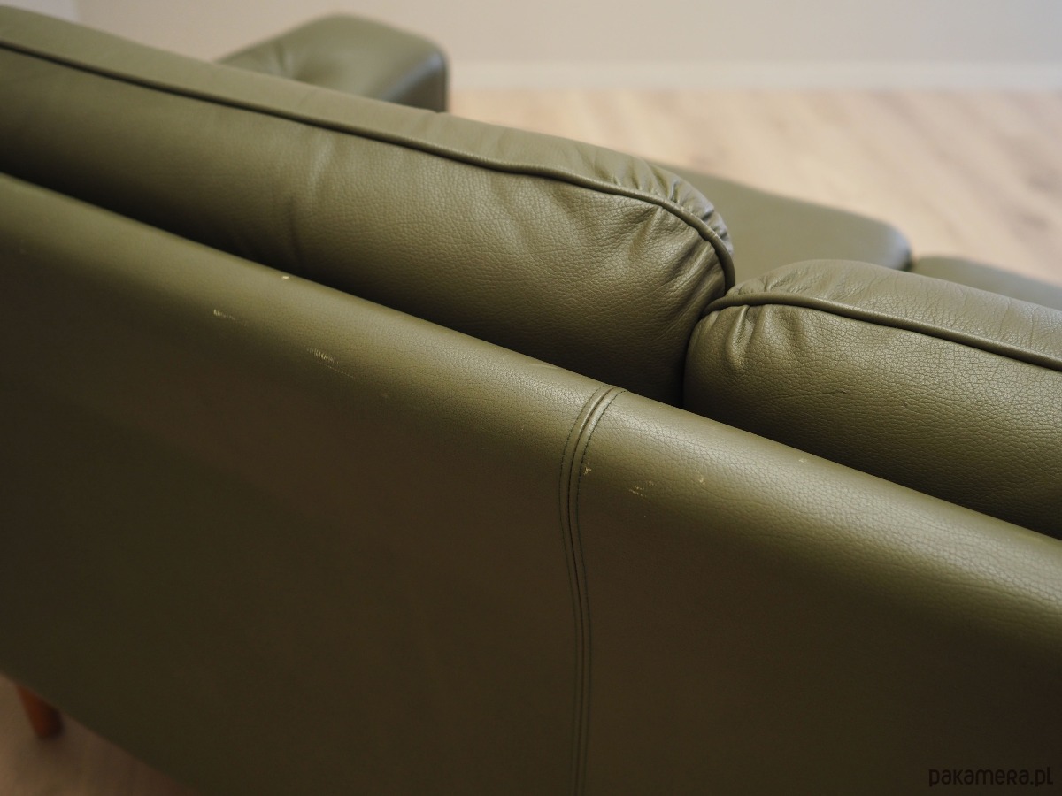 Sofa skórzana zielona, duński design, lata 70, produkcja: Dania