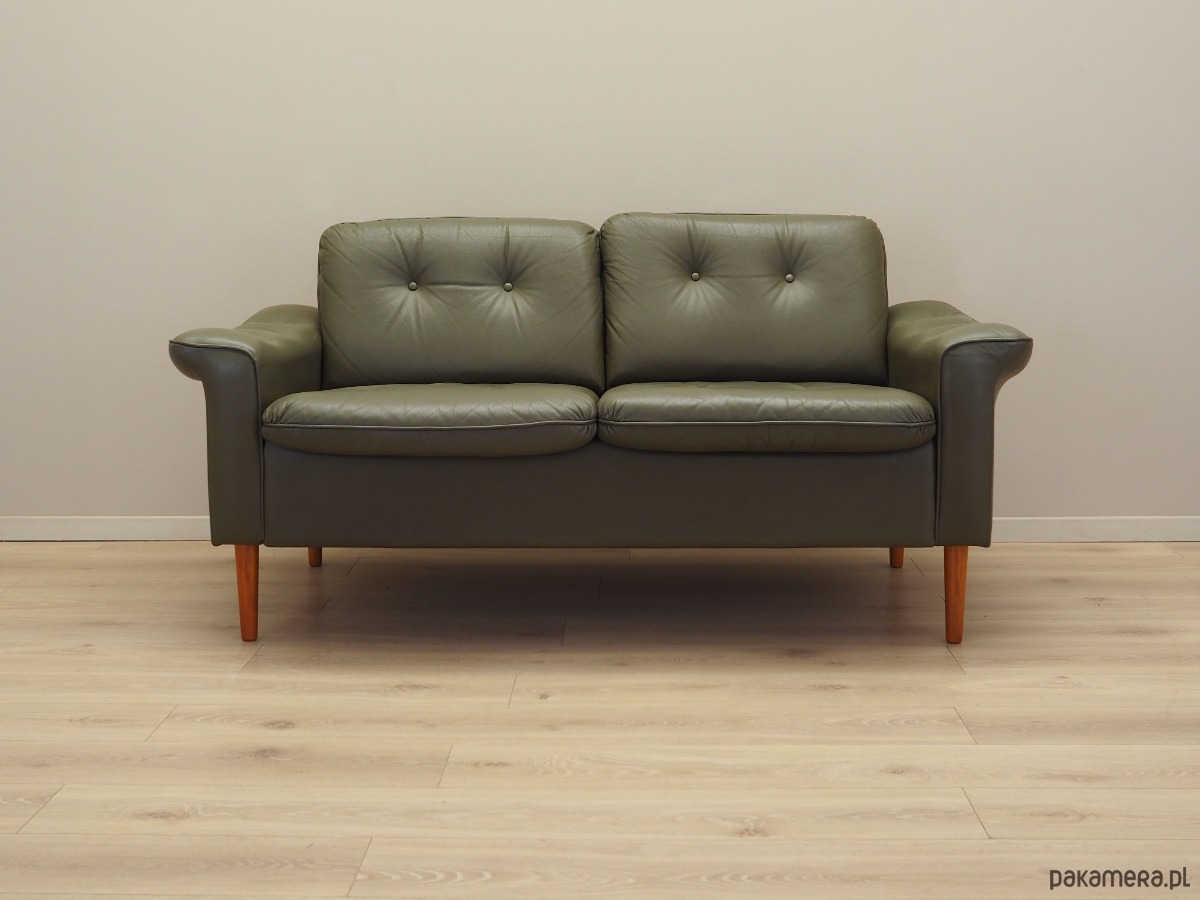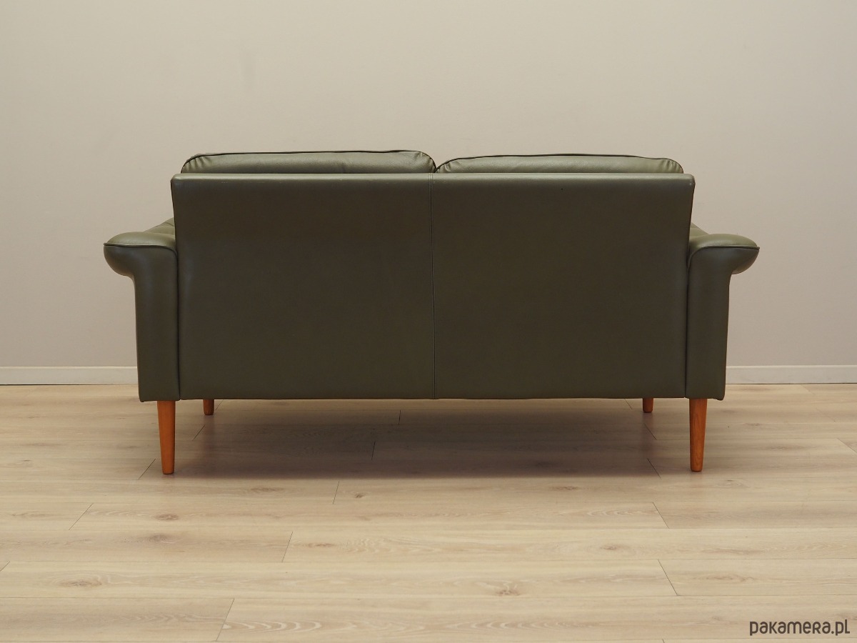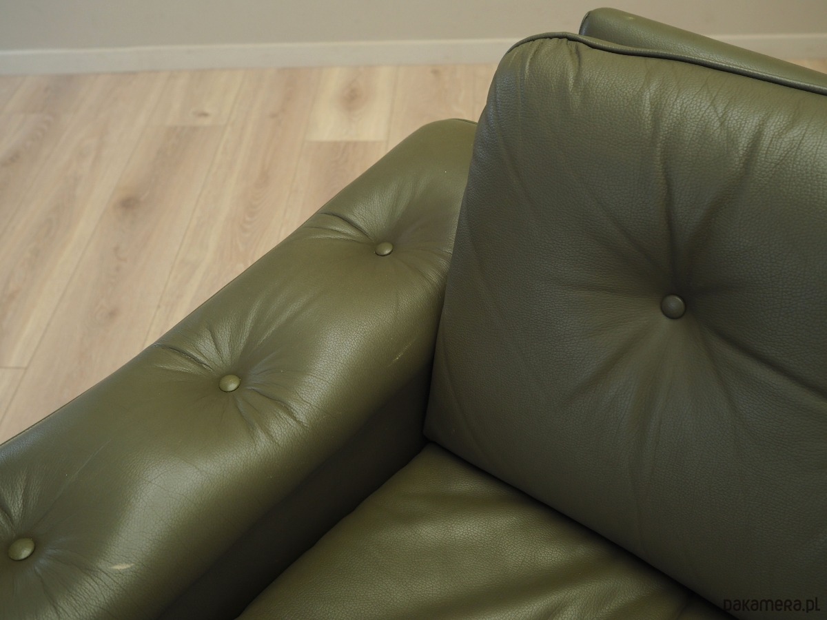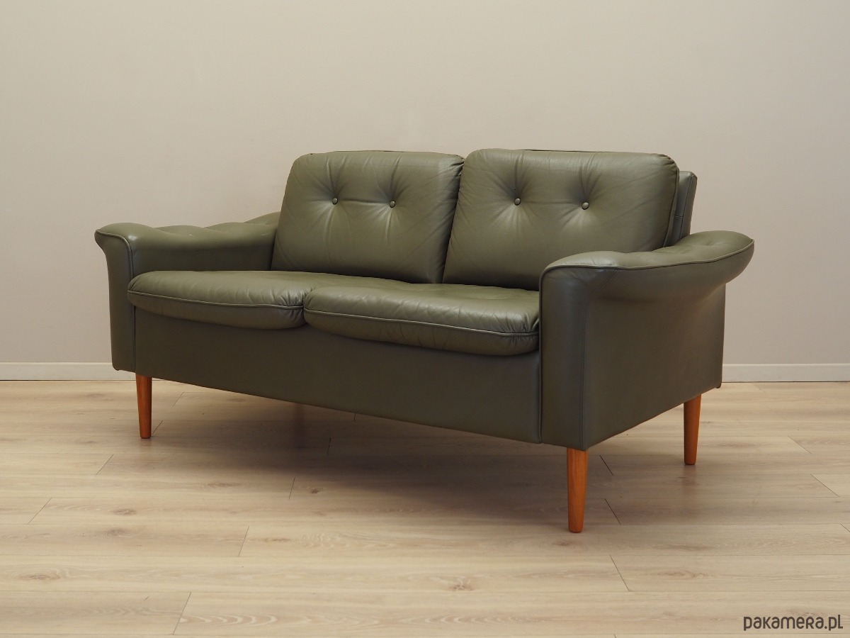 Sofa skórzana zielona, duński design, lata 70, produkcja: Dania