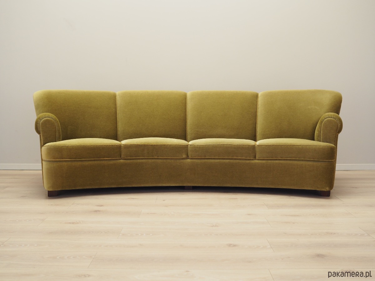 Sofa welurowa zielona, duński design, lata 60, produkcja: Dania
