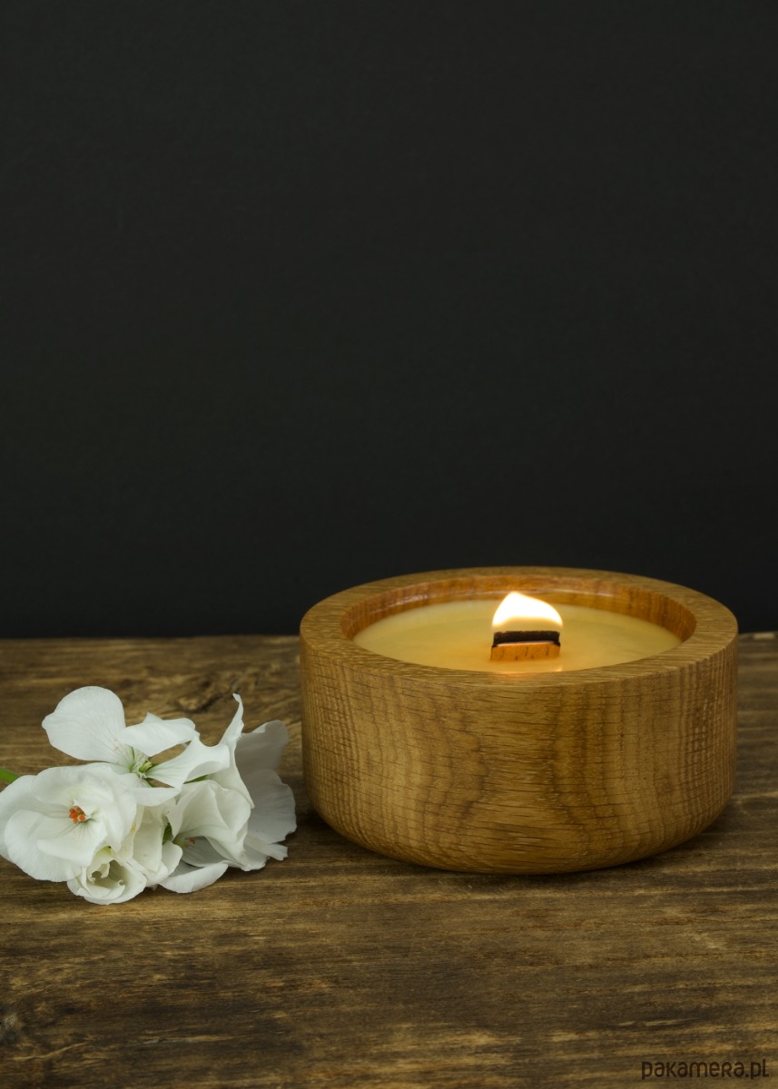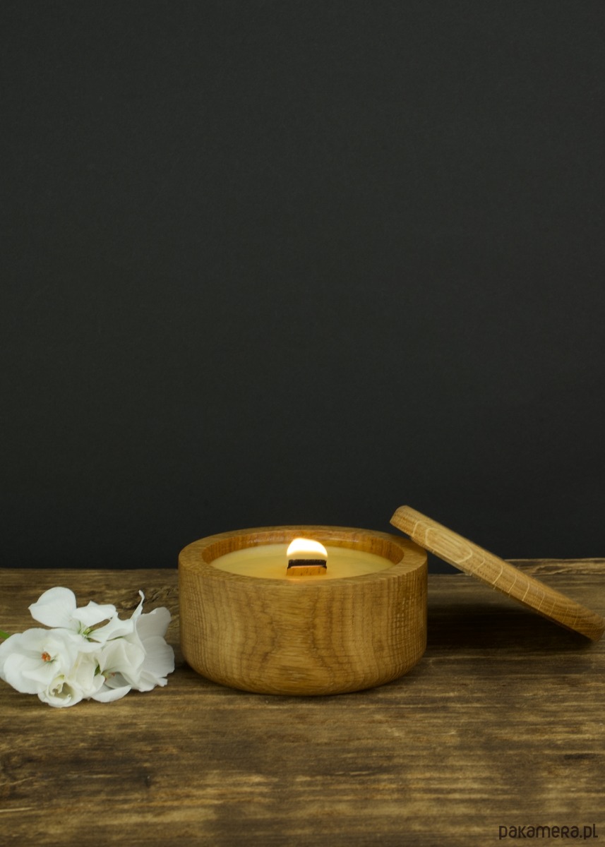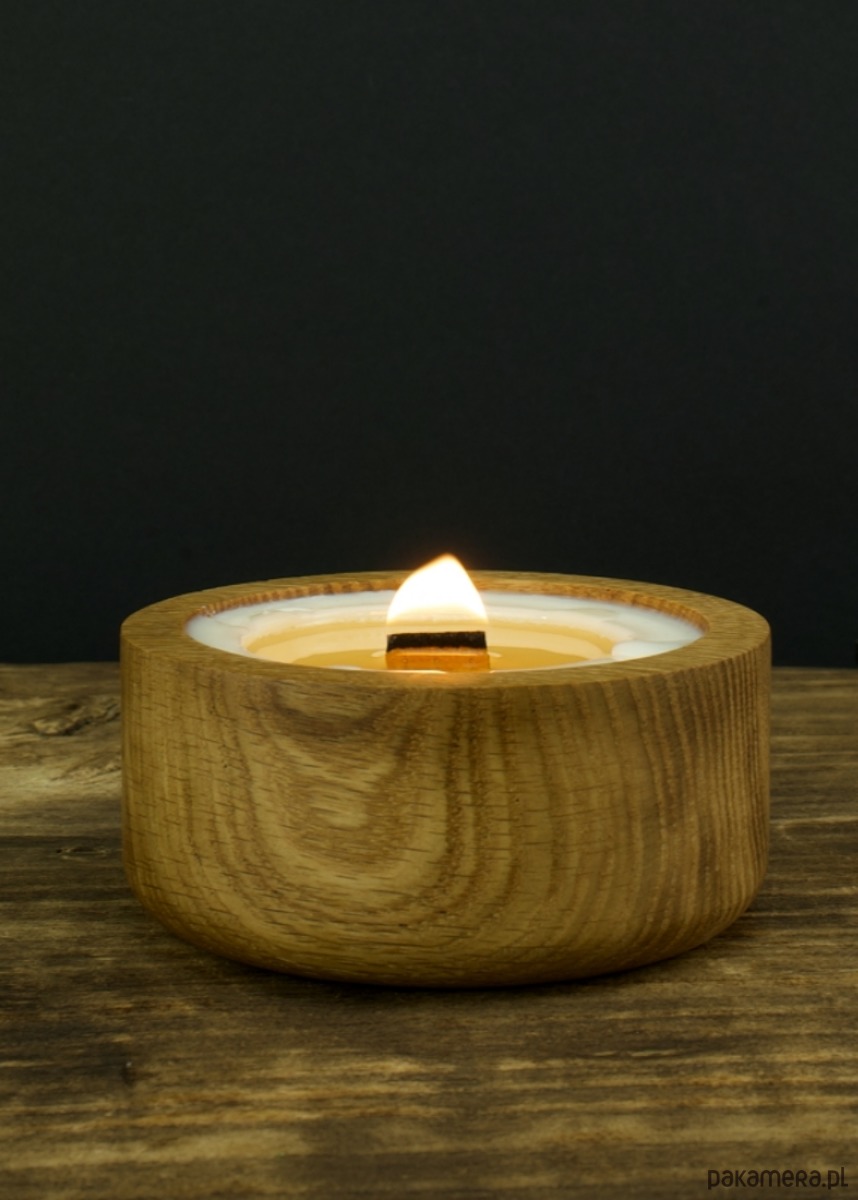 Poznaj jedyną w swoim rodzaju świecę w drewnie dębowym - połączenie wosku sojowego z olejkami zapachowymi zamknięte w szlachetnym, ciepłym drewnie dębowym. To piękny dodatek do wnętrz oraz źródło przytulności dla każdego miłośnika natury i drzewnych zapachów. Będzie doskonałym prezentem dla Ciebie lub dla bliskiej Ci osoby!