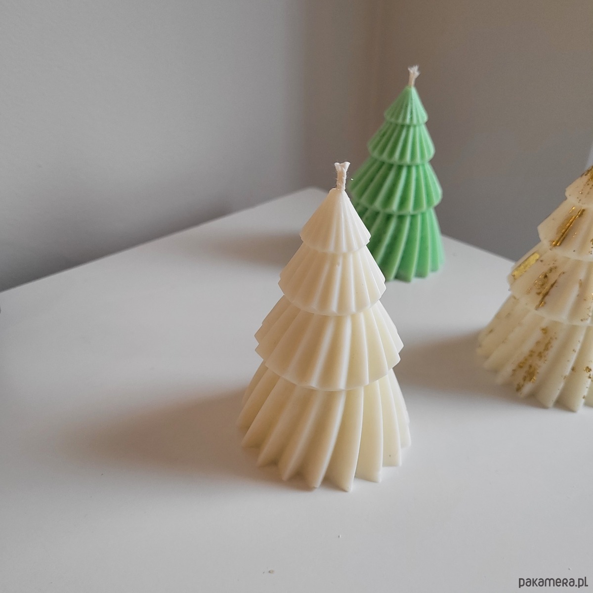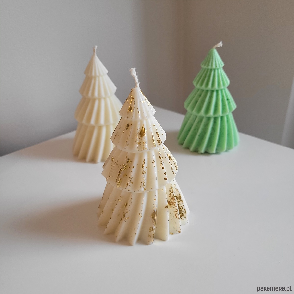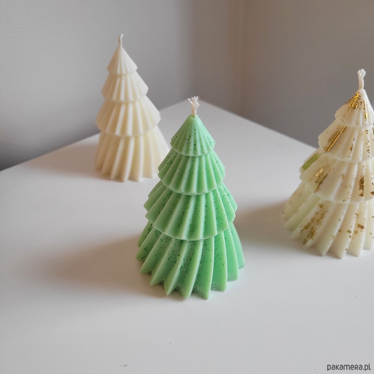 Dostępne w różnych kolorach: klasyczna biel, świąteczna zieleń oraz dekoracja z akcentami złota.