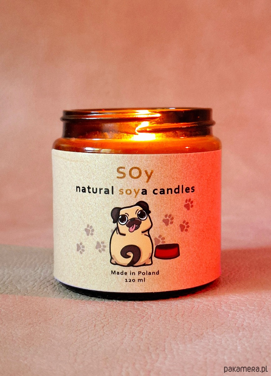 Sojowa świeca z mopsem, idealna dla właścicielki pupila