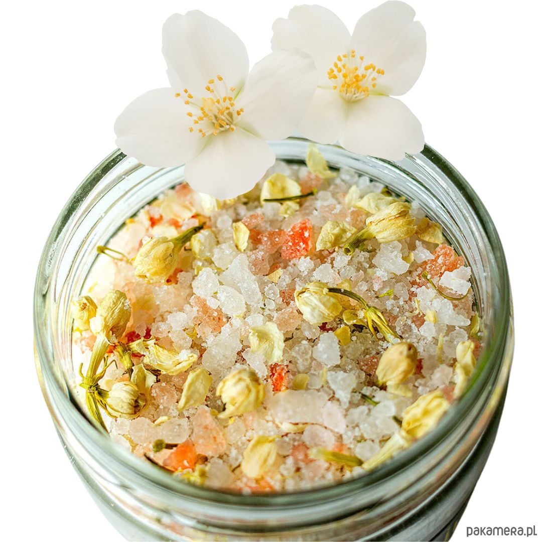 sól z morza martwego, różowa sól himalajska, suszony kwiat jaśminu, kompozycja zapachowa